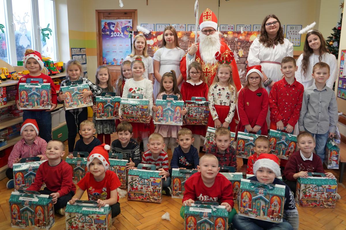 Święty Mikołaj odwdzięczył się pięknymi prezentami, które sprawiły dzieciom ogromną radość. Spotkanie przebiegło w serdecznej i pełnej świątecznej magii atmosferze. Dziękujemy Świętemu Mikołajowi za odwiedziny i z niecierpliwością czekamy na kolejne spotkanie za rok!