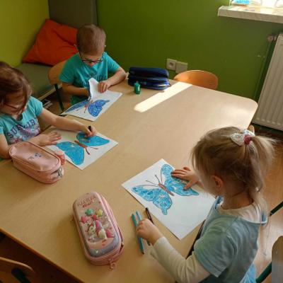 Dzieci w każdej grupie uczestniczyły w tematycznych zajęciach. Przedszkolaki wykonywały prace plastyczne promujące Dzień Świadomości Autyzmu, oglądały prezentacje multimedialne i filmy edukacyjne, a następnie rozmawiały o tym, jak bohaterowie opowiadań postrzegają świat i jak się rozwijają.