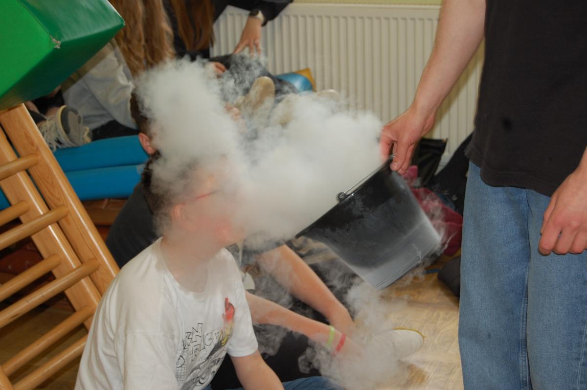 24 kwietnia br. odbyły się dla zainteresowanych uczniów zajęcia z zakresu chemii i fizyki. Animator grupy „Zaelektryzowani" pokazał wiele ciekawych doświadczeń z wodorem, helem, azotem, tlenem, parą wodną. W czasie tej niezwykłej lekcji uczniowie obserwowali szereg ciekawych pokazów m.in. „palącą się dłoń". Prowadzący w umiejętny sposób połączył elementy humorystyczne, edukacyjne, zachęcając uczestników do wspólnego, bezpiecznego eksperymentowania. Dziękujemy za ciekawy pokaz, świetne doświadczenia i pożytecznie, miło spędzony czas.