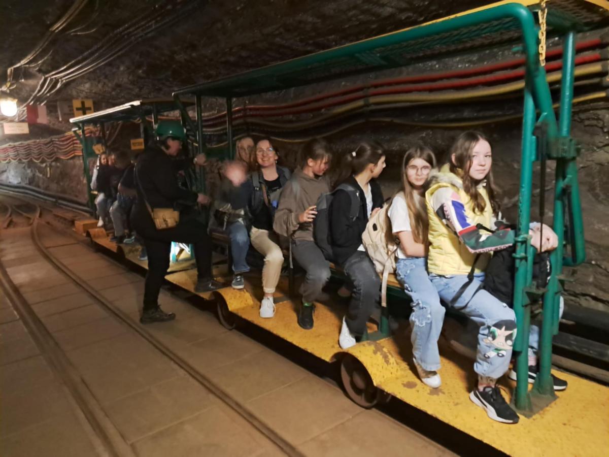 Już sama podróż pod ziemię była ekscytująca – najpierw zjechaliśmy windą, a potem jechaliśmy górniczą kolejką, co bardzo nam się podobało. Podczas zwiedzania dowiedzieliśmy się, jak wyglądała praca dawnych górników – jak wydobywano sól, jakich używano narzędzi oraz jakie trudności wiązały się z tą ciężką i niebezpieczną pracą. Przewodnik ciekawie opowiadał o historii kopalni, a my mogliśmy zobaczyć m.in. solne komory, rzeźby z soli oraz podziemne kaplice.