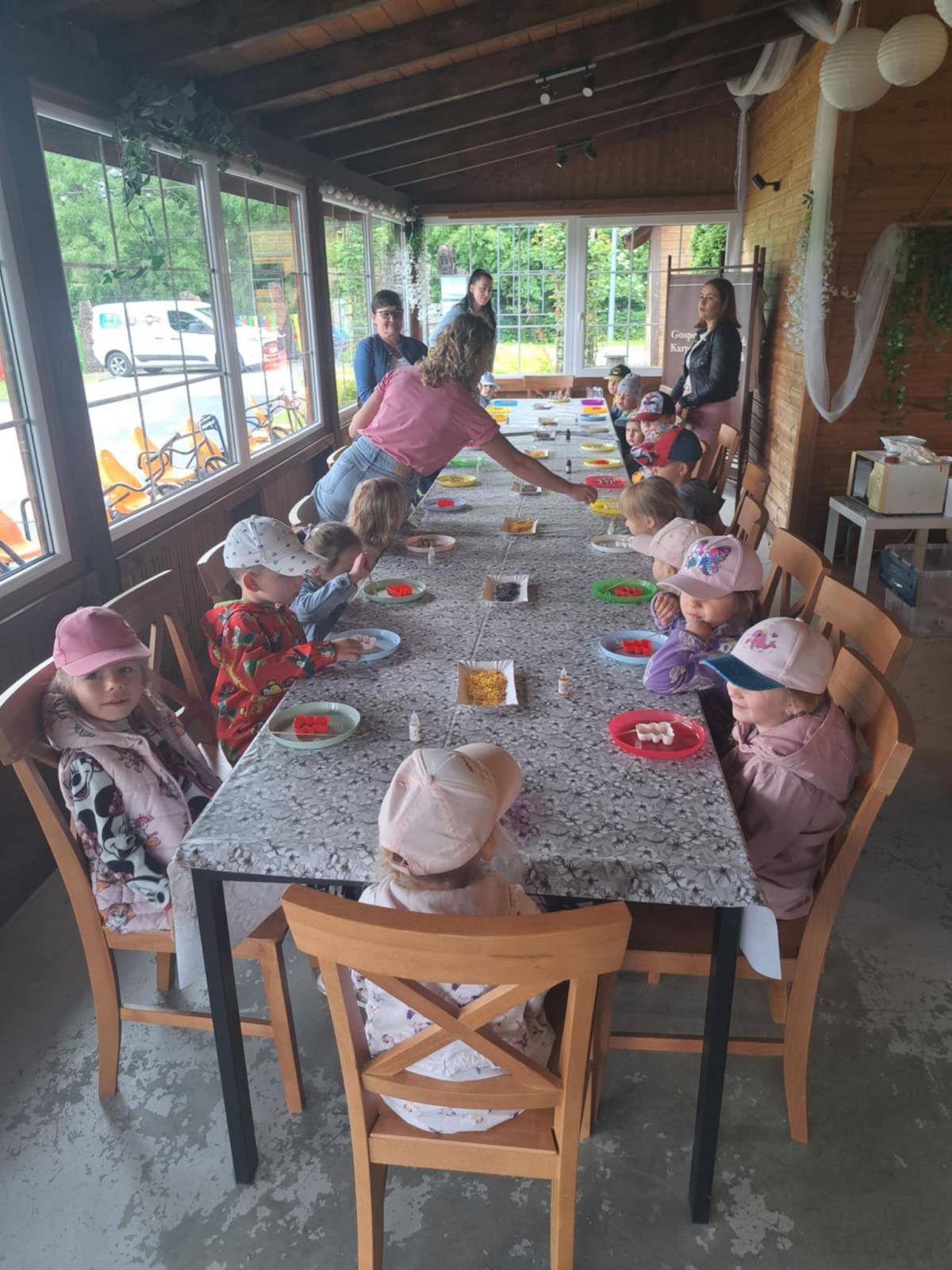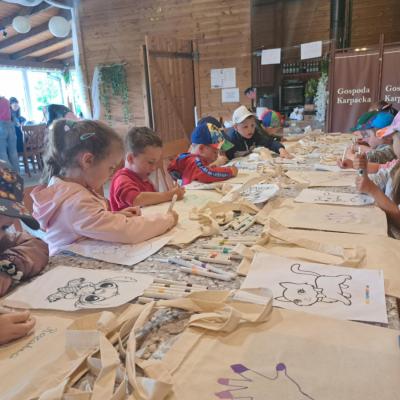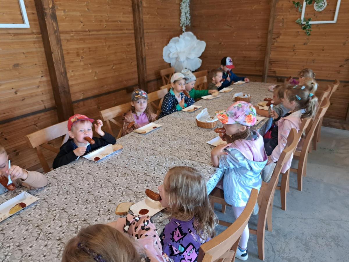 W dniach 10 i 11 czerwca odbyła się wycieczka do „Bajkowej Krainy w Odrzechowej”. Przedszkolaki odwiedziły malownicze i urokliwe miejsce, gdzie miały możliwość miło spędzić czas, korzystając z bogatej oferty. Po przybyciu na miejsce organizatorzy powitali wszystkich uczestników. Dzieci zostały podzielone na grupy oraz zaproszone na zajęcia z ozdabiania toreb lnianych i warsztaty mydlane. Po warsztatach dzieci miło spędziły czas na placu zabaw, gdzie czekało wiele atrakcji m. in. huśtawki, kręgle, gokarty, bańki mydlane, zjeżdżalnie, drewniane domki, ścianka wspinaczkowa oraz inne urządzenia do aktywnego spędzania czasu. Wszyscy doskonale się bawili. Po tak aktywnym spędzeniu czasu wszyscy mieli możliwość delektowania się smaczną kiełbaską z grilla. Z wycieczki pełnej wrażeń i niespodzianek przedszkolaki wróciły do przedszkola zmęczone, ale bardzo zadowolone.