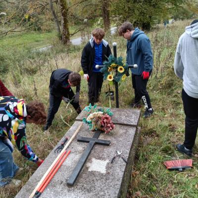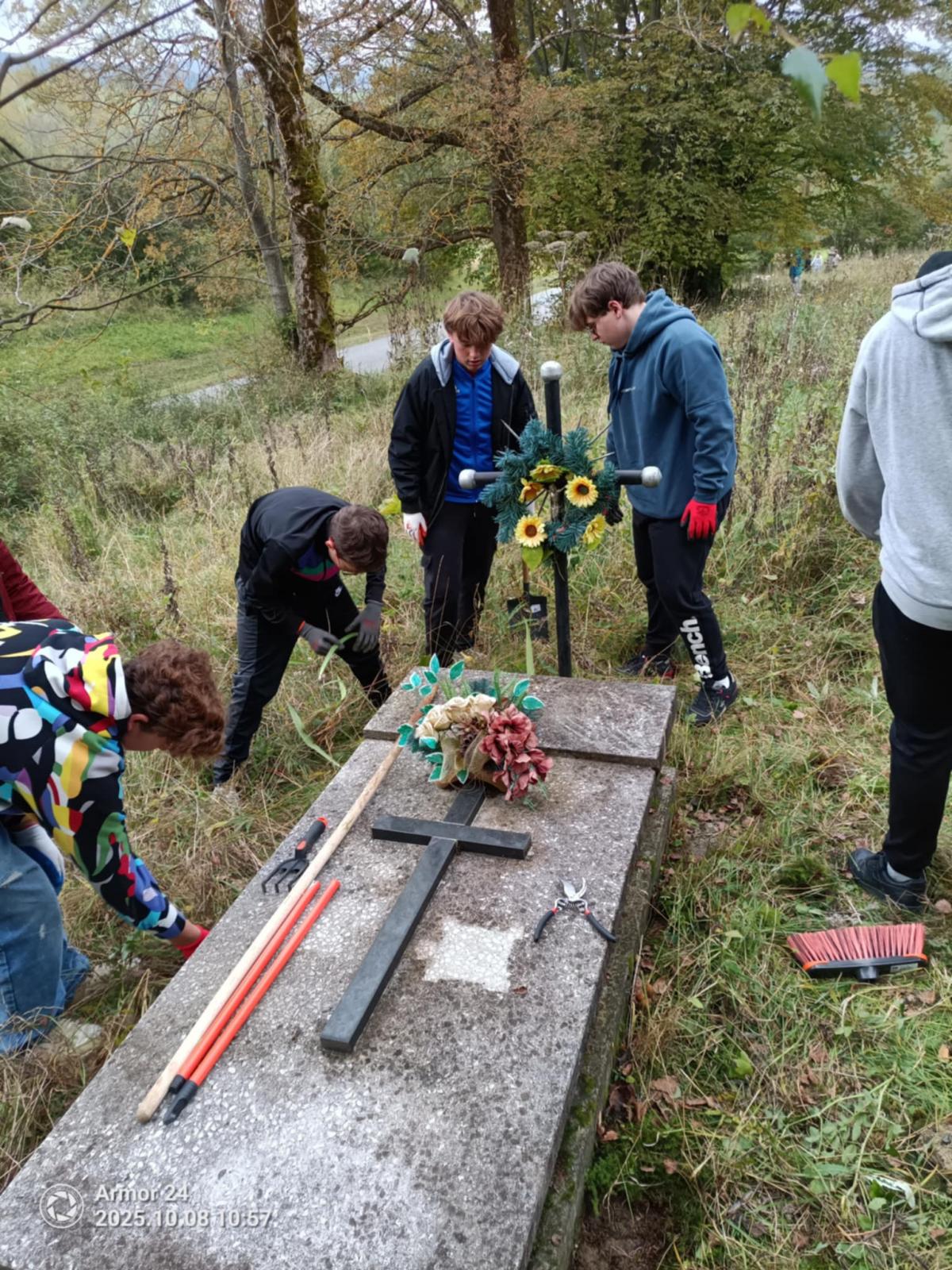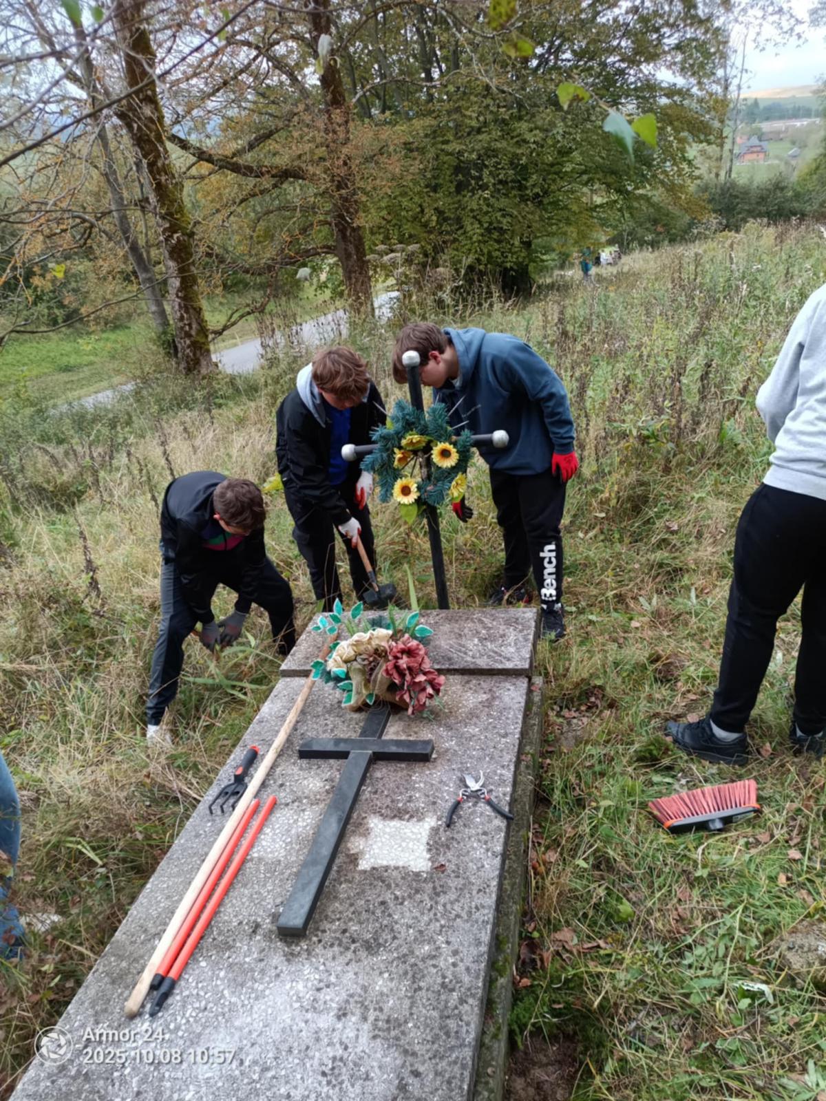 8 października uczniowie rozpoczęli działania praktyczne, wzięli udział w pracach porządkowych i dokumentacyjnych na cmentarzu greckokatolickim w Płonnej. Ósmoklasiści mogli wykorzystać zdobytą wiedzę w praktyce i realnie przyczynić się do ochrony dziedzictwa naszej gminy.
