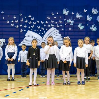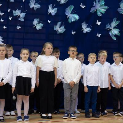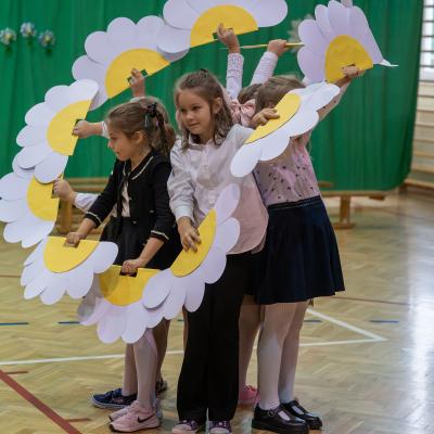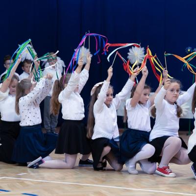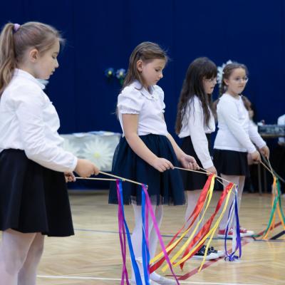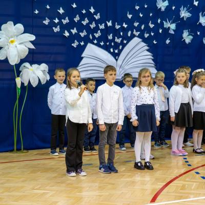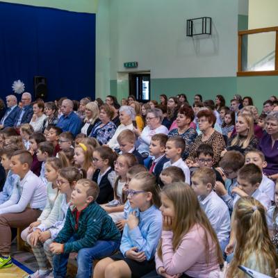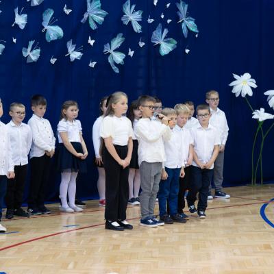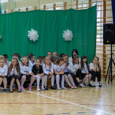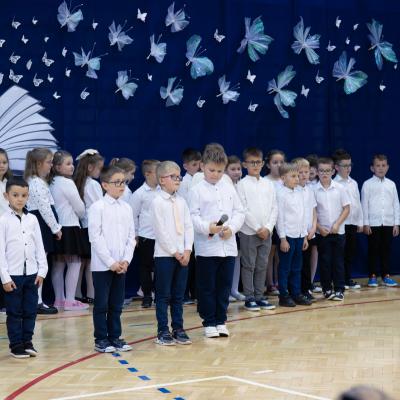 Część artystyczną uroczystości przygotowały klasy drugie pod opieką swoich wychowawców: pani Justyny Gurgul oraz pani Magdaleny Sternik. Do przygotowania dekoracji włączyła się także pani Anna Wisełka.