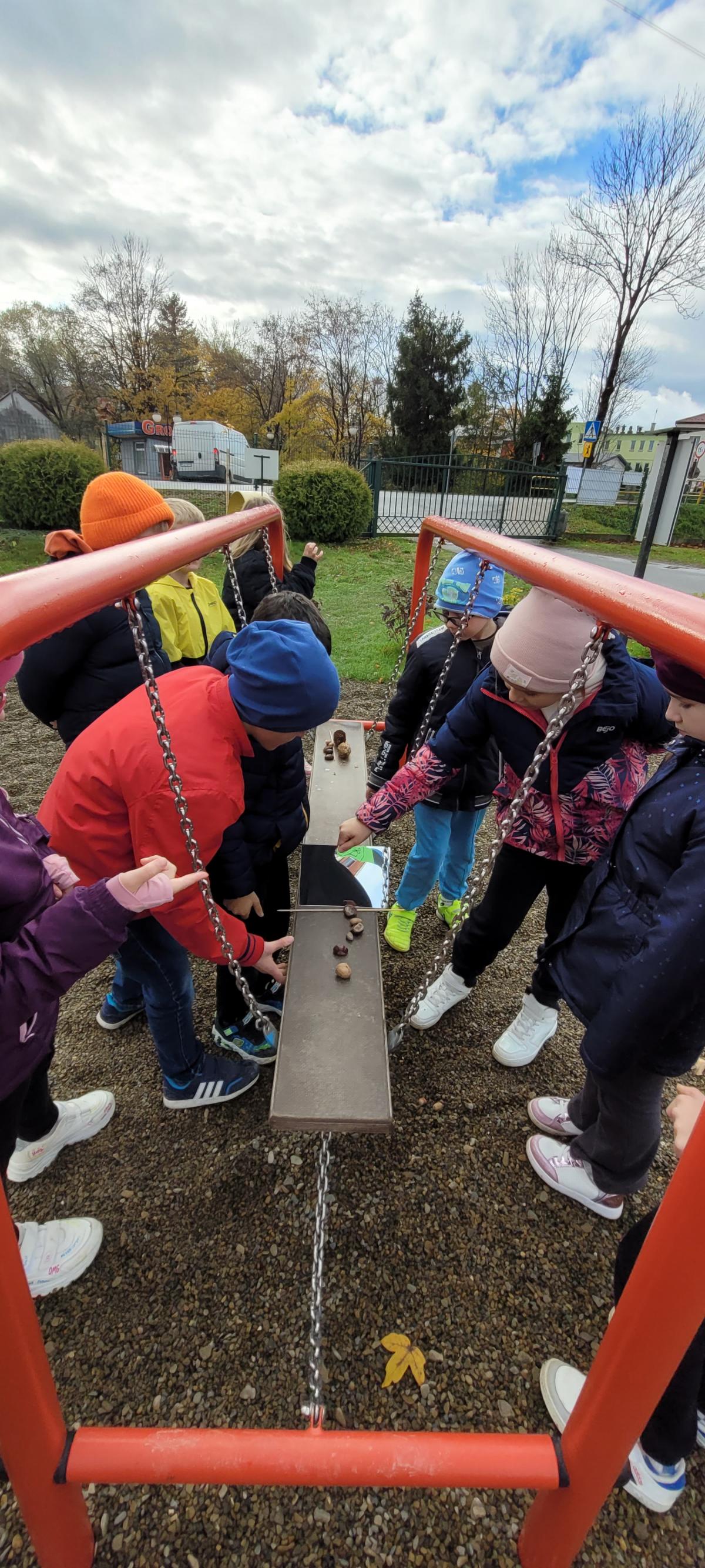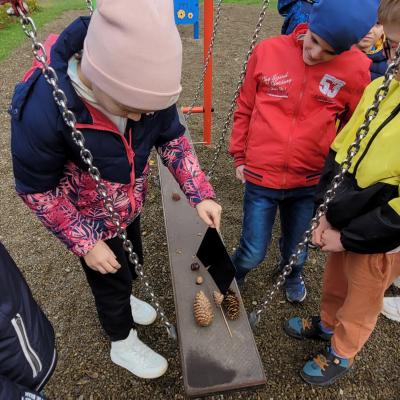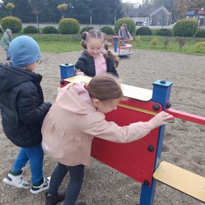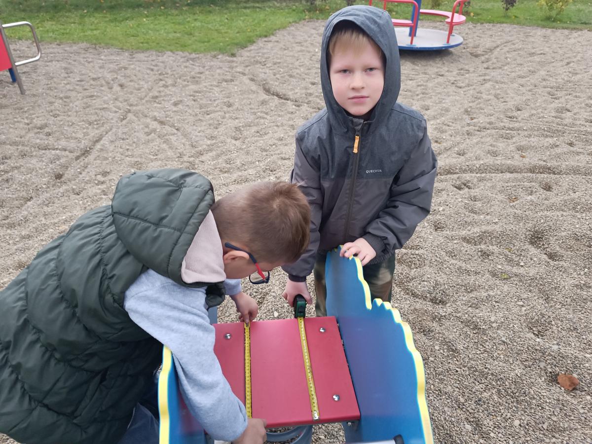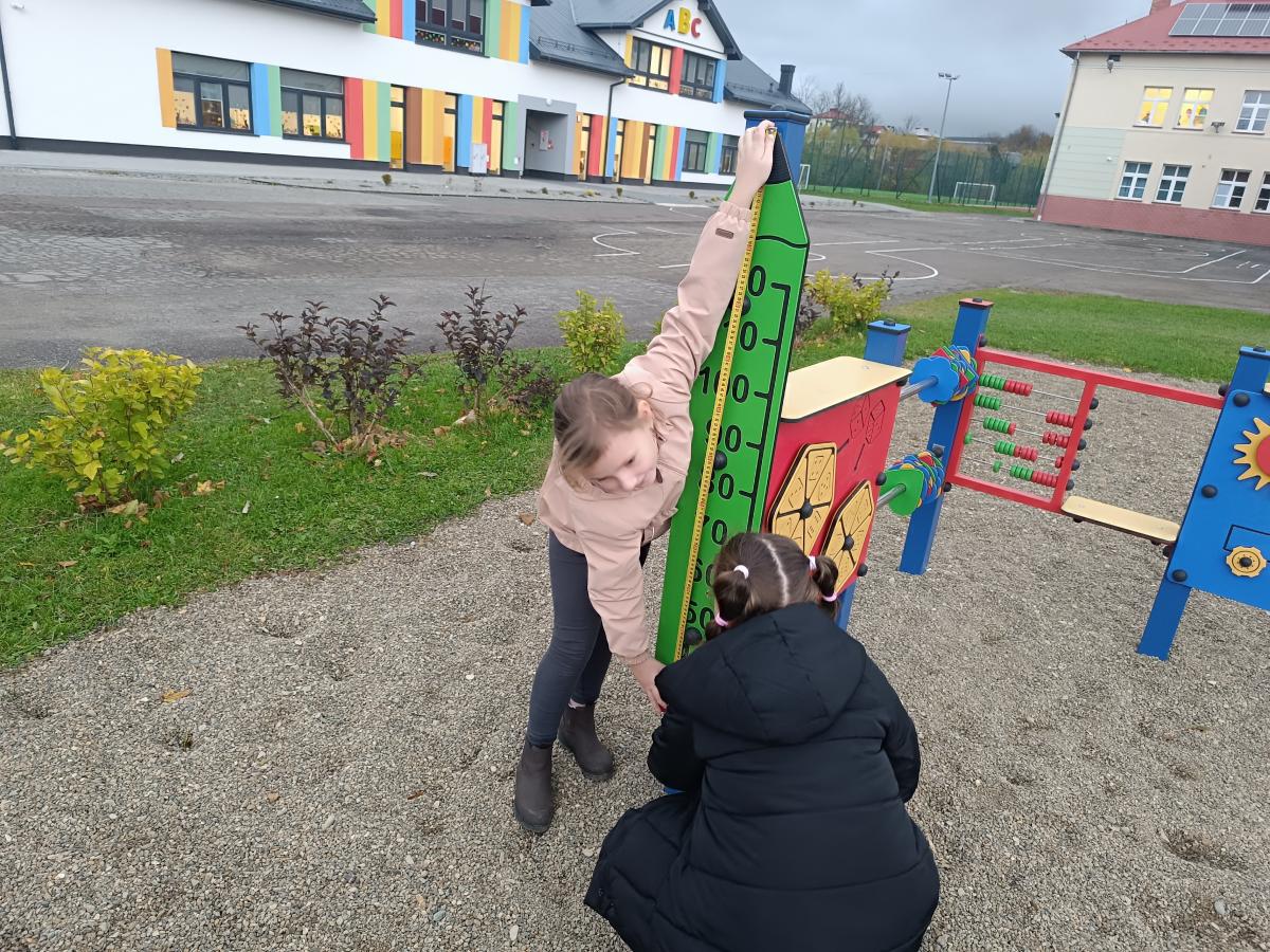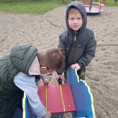 Podczas realizacji pierwszego modułu „Matematyka na placu zabaw” dzieci miały okazję przekonać się, że królowa nauk towarzyszy im na co dzień. Odwiedzając szkolny plac zabaw obserwowaliśmy różne aspekty matematyki: liczby, kształty, figury płaskie i przestrzenne, pomiary, czas, symetrię, rytmy, wielkość, wagę, linie, porównywanie i zbiory.