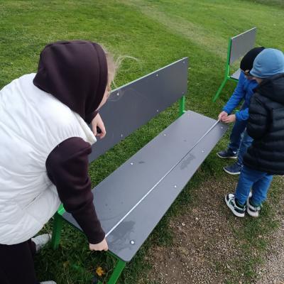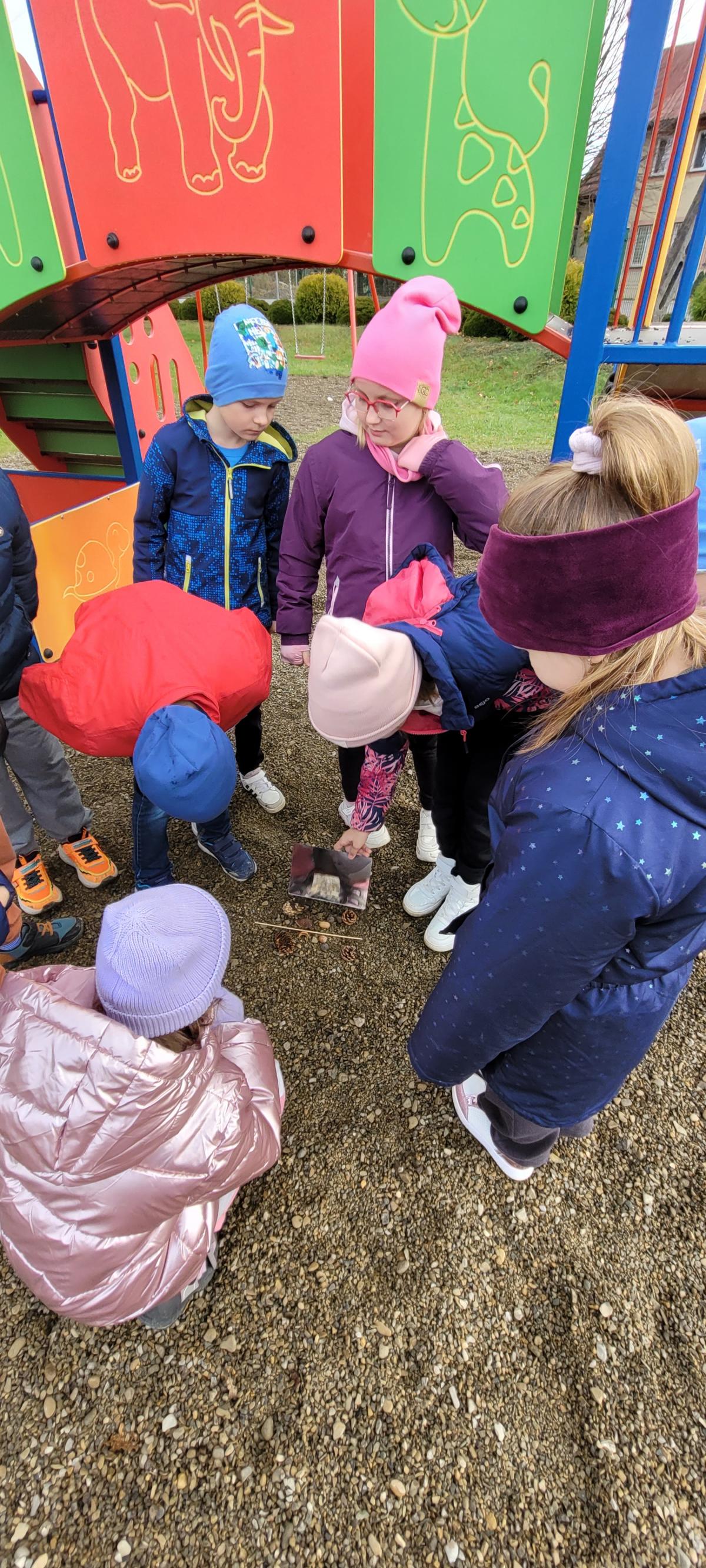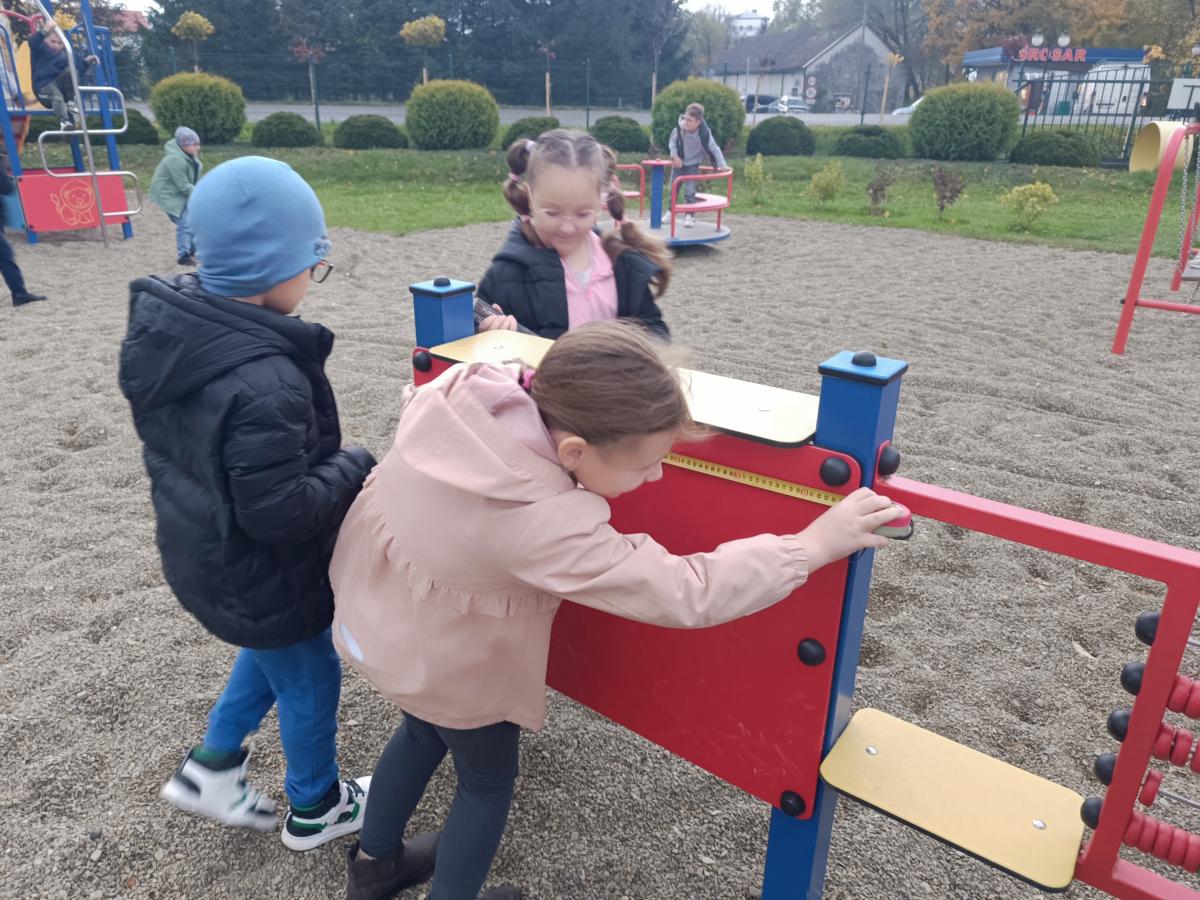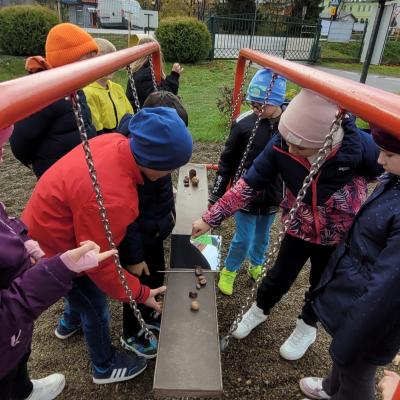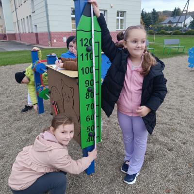Podczas realizacji pierwszego modułu „Matematyka na placu zabaw” dzieci miały okazję przekonać się, że królowa nauk towarzyszy im na co dzień. Odwiedzając szkolny plac zabaw obserwowaliśmy różne aspekty matematyki: liczby, kształty, figury płaskie i przestrzenne, pomiary, czas, symetrię, rytmy, wielkość, wagę, linie, porównywanie i zbiory.