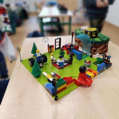 Zajęcia zakończyły się przygotowaniem notatki wizualnej oraz makiety wymarzonego placu zabaw.
