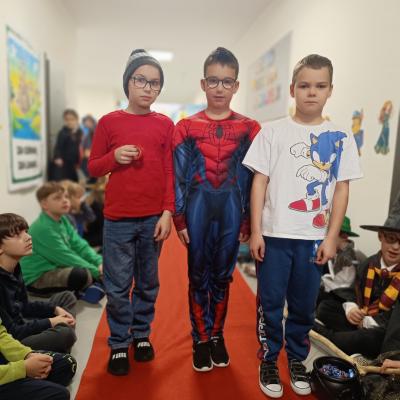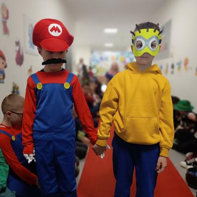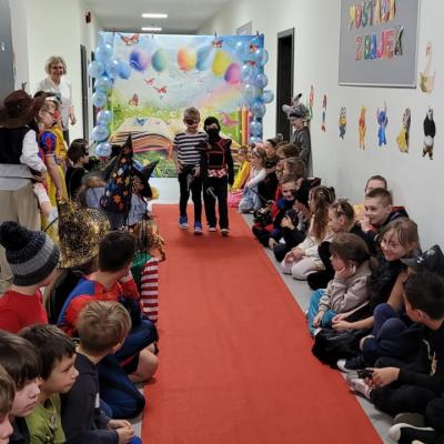 W naszej szkole odbył się wyjątkowy Dzień Postaci z Bajek dla uczniów klas 1–3. Tego dnia szkolne korytarze wypełniły się kolorowymi strojami ulubionych bohaterów bajek i baśni. Dzieci z dumą prezentowały swoje przebrania, przechodząc po przygotowanym czerwonym dywanie, w otoczeniu barwnych dekoracji.