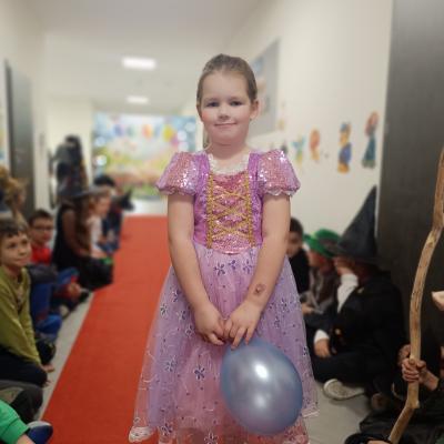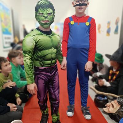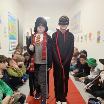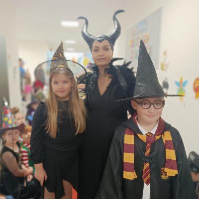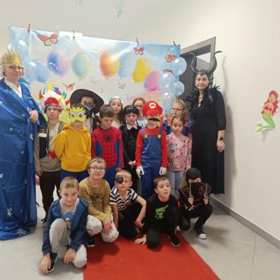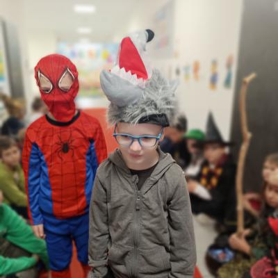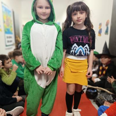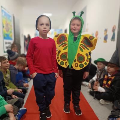 Wspólnie świętowaliśmy radość czytania i siłę wyobraźni. Do zabawy dołączyła również Pani Dyrektor, która także pojawiła się w bajkowym przebraniu, dodając wydarzeniu jeszcze więcej magii.