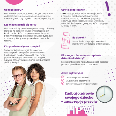 HPV (Human Papilloma Virus) to wirus odpowiedzialny m.in. za zachorowania na raka szyjki macicy oraz inne choroby nowotworowe. Najwyższą skuteczność szczepień odnotowuje się w najmłodszych grupach wiekowych.