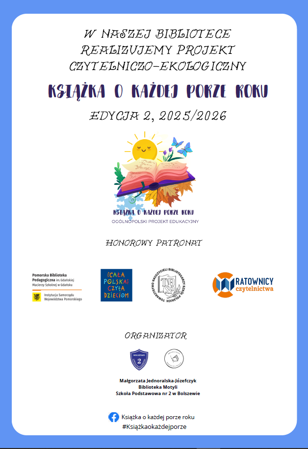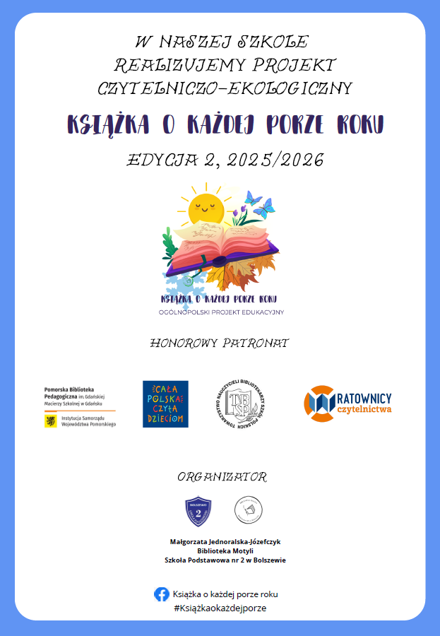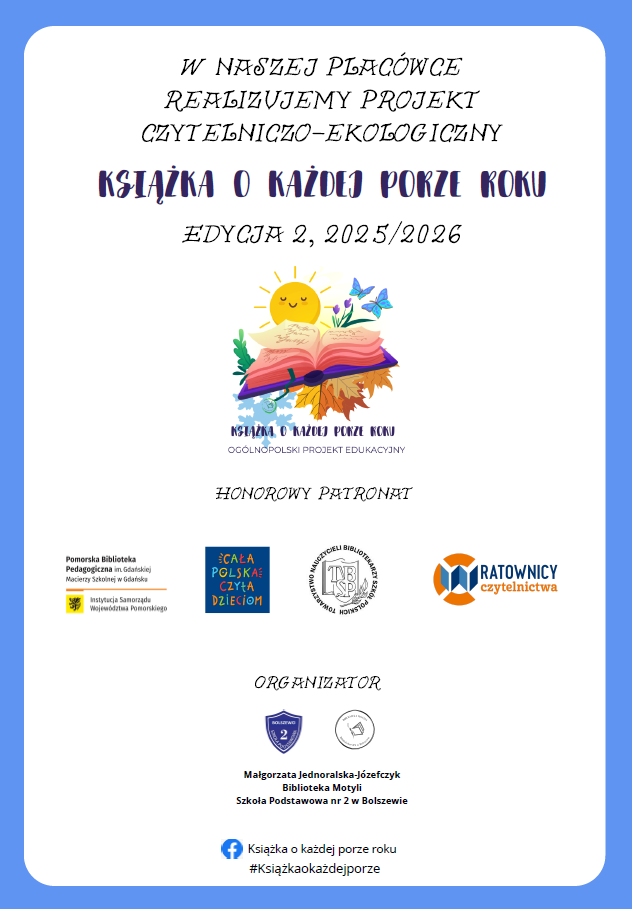 Biblioteka Szkolna w bieżącym roku szkolnym przystąpiła do ogólnopolskiego projektu edukacyjnego. "Książka o każdej porze roku". Projekt ma na celu propagowanie czytelnictwa wśród dzieci, a także przekazywanie szacunku do otaczającej nas przyrody oraz budowanie postaw ekologicznych. Uczniowie wykonali już pierwsze zadanie, związane z jesienią. Odsłuchali fragmentów książki "Po co nam lasy?", wspólnie zastanowili się nad odpowiedzią na to pytanie. Następnie pracując z atlasem drzew, określili z jakich drzew pochodzą liście. Uczniowie wykonali piękne, różnokolorowe mandale z liści nazbieranych podczas jesiennego spaceru, tworząc niepowtarzalne kompozycje.
