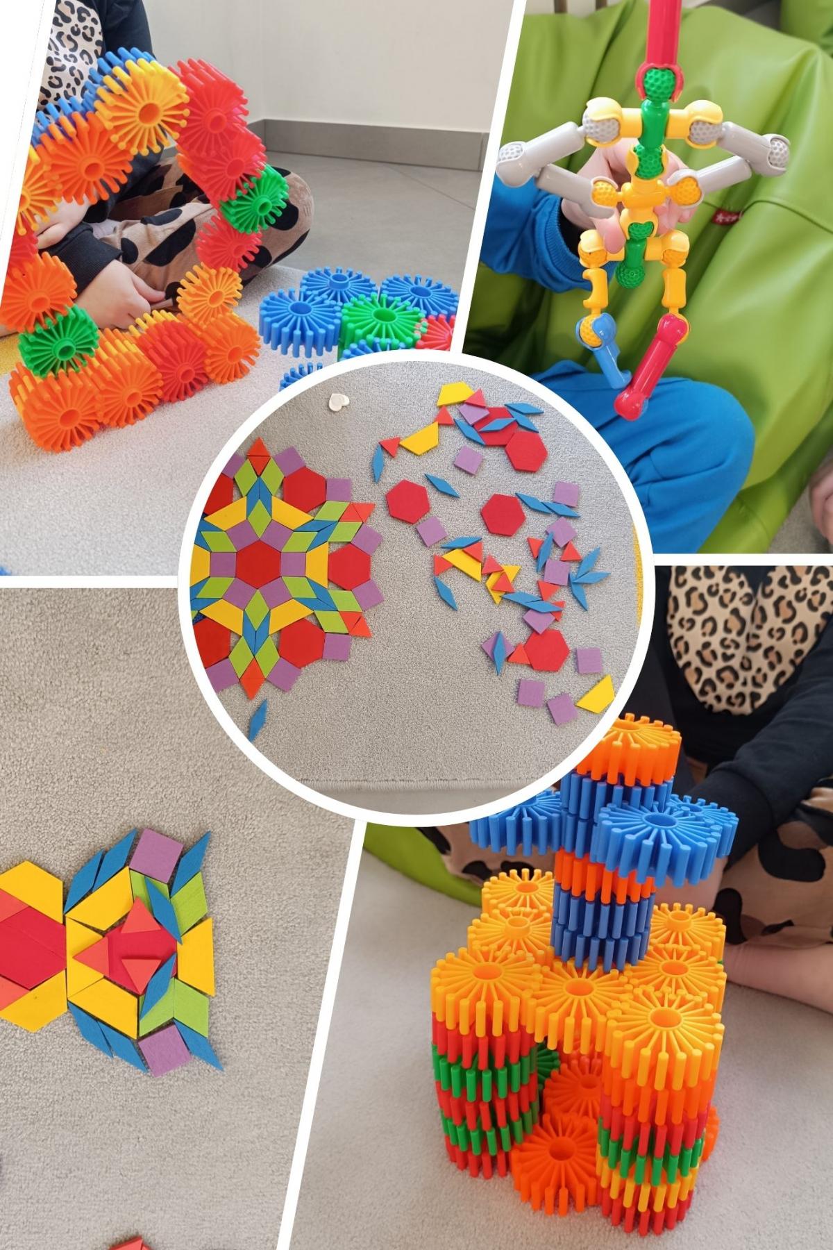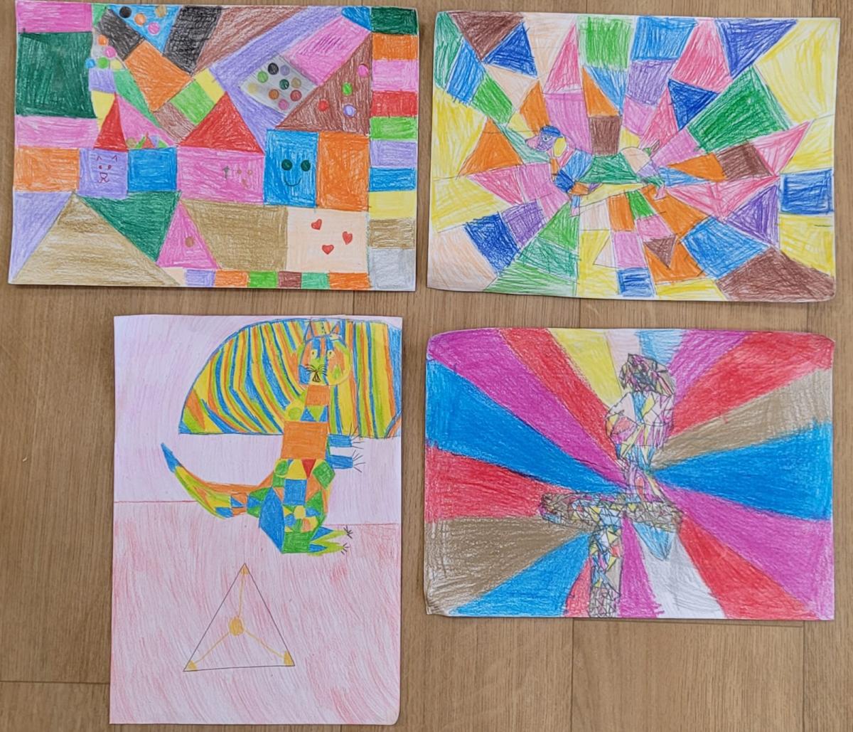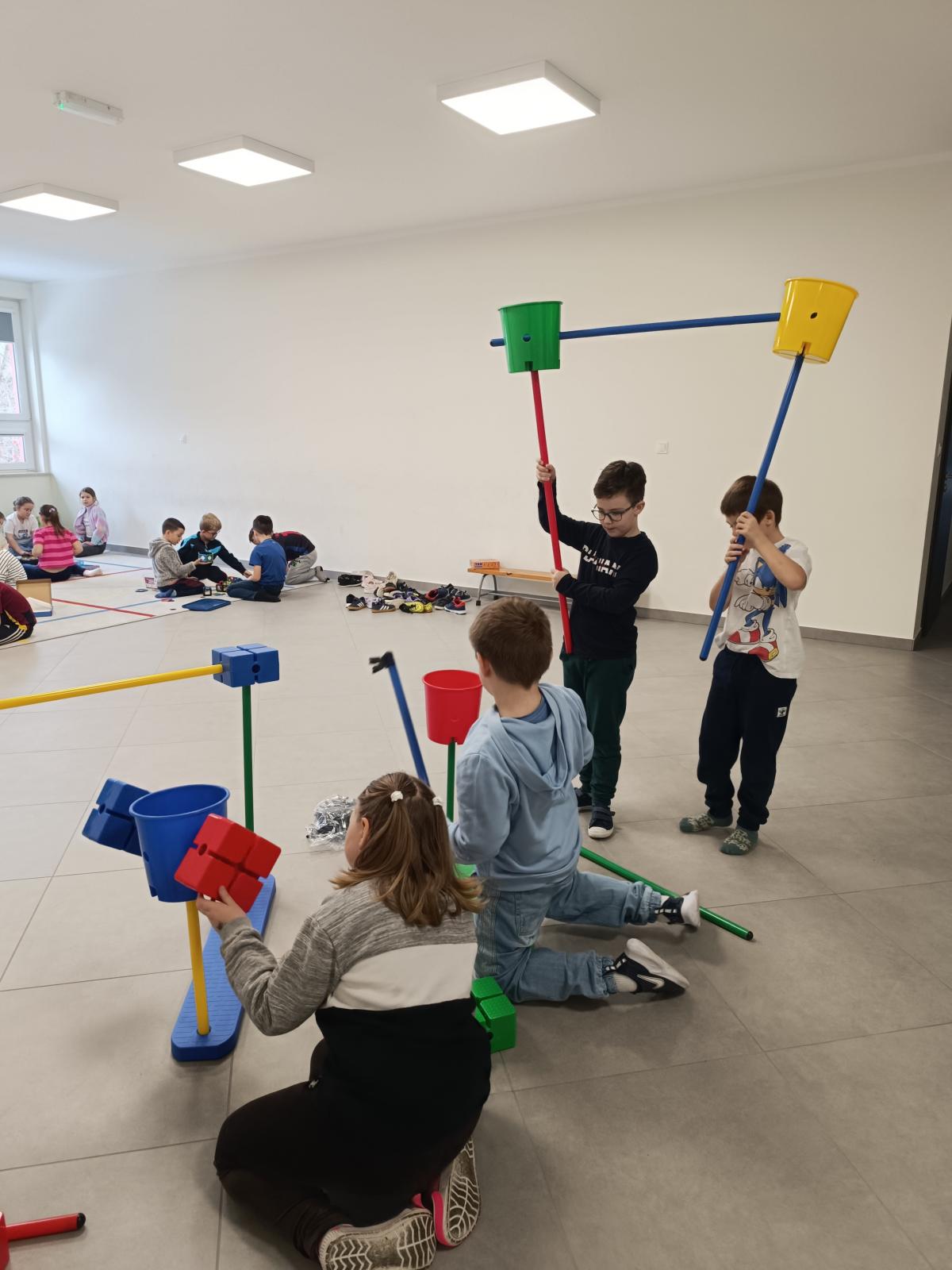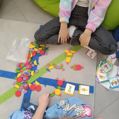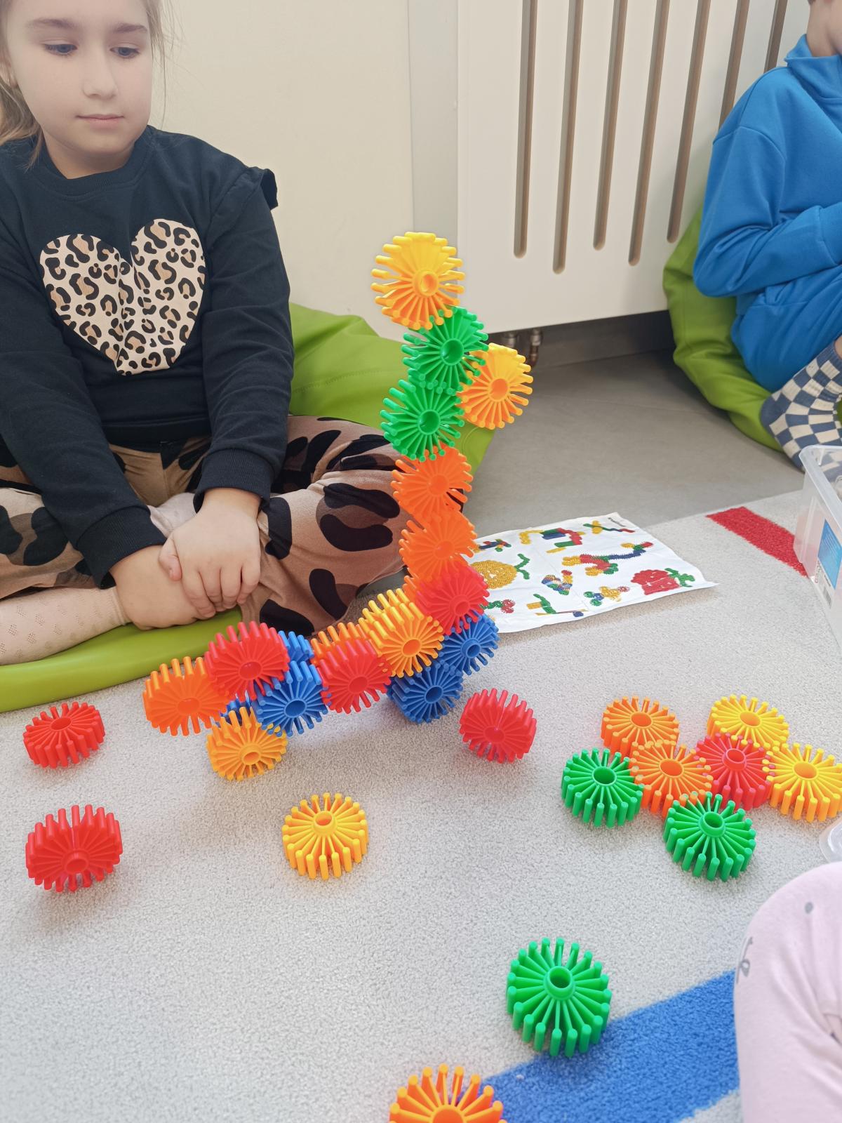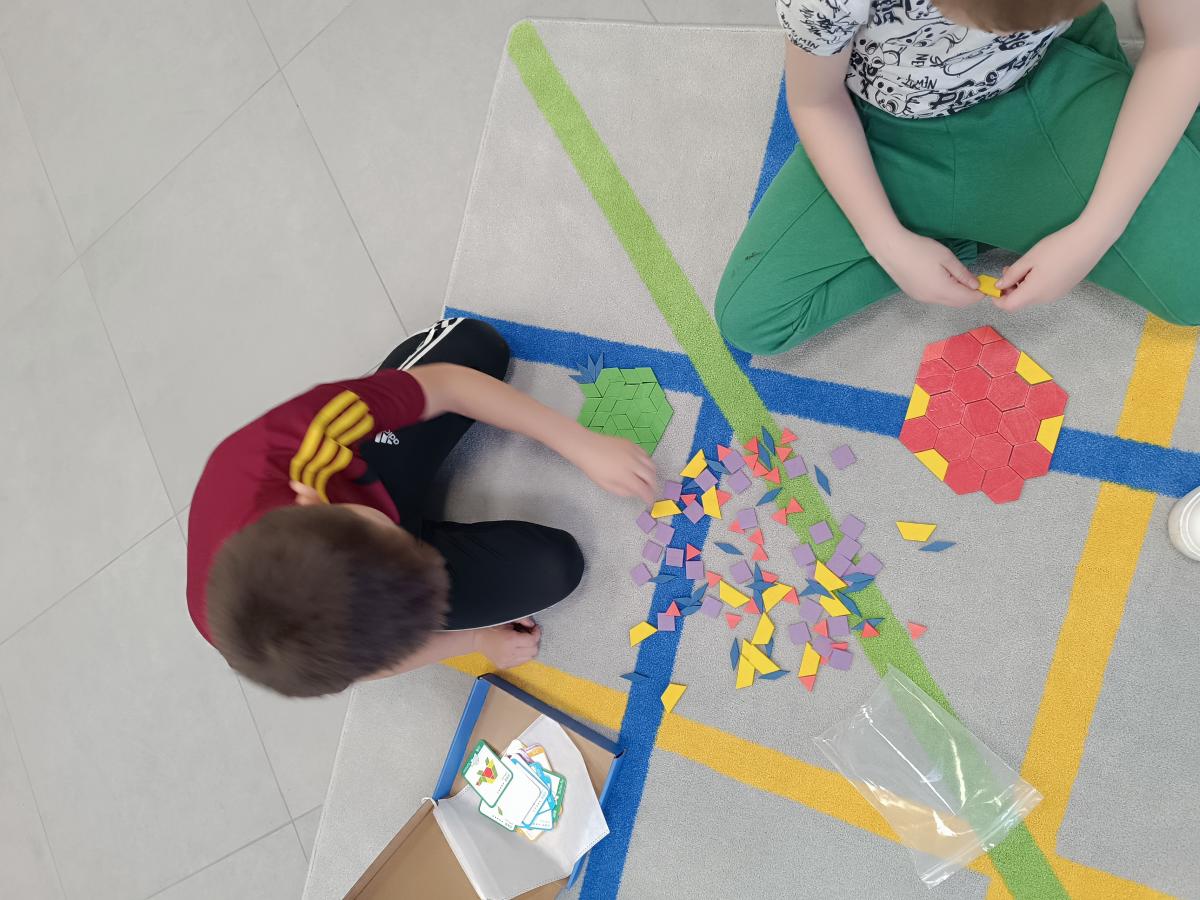Na zajęciach projektu „Natalka i Antek w Świecie Wielkiej Matematyki” uczniowie poznawali temat „Matematyka w sztuce”. Na początku obejrzeli film ukazujący, że matematyka jest ściśle związana ze światem artystycznym – wpływa na kompozycję, proporcje i kształty. Następnie rozwiązywali zadania matematyczne związane z geometrią i symetrią. W części praktycznej dzieci tworzyły własne prace plastyczne, wykorzystując różnorodne kształty, a także budowały z klocków różne figury, rzeźby i bryły. Zajęcia pokazały, że matematyka może być twórcza, ciekawa i inspirująca.