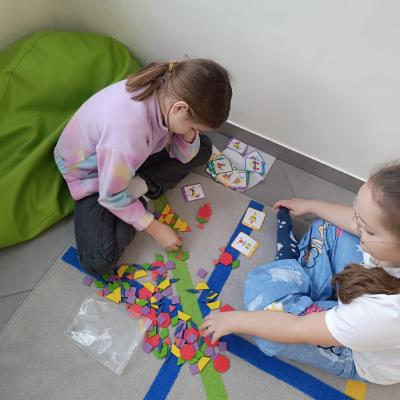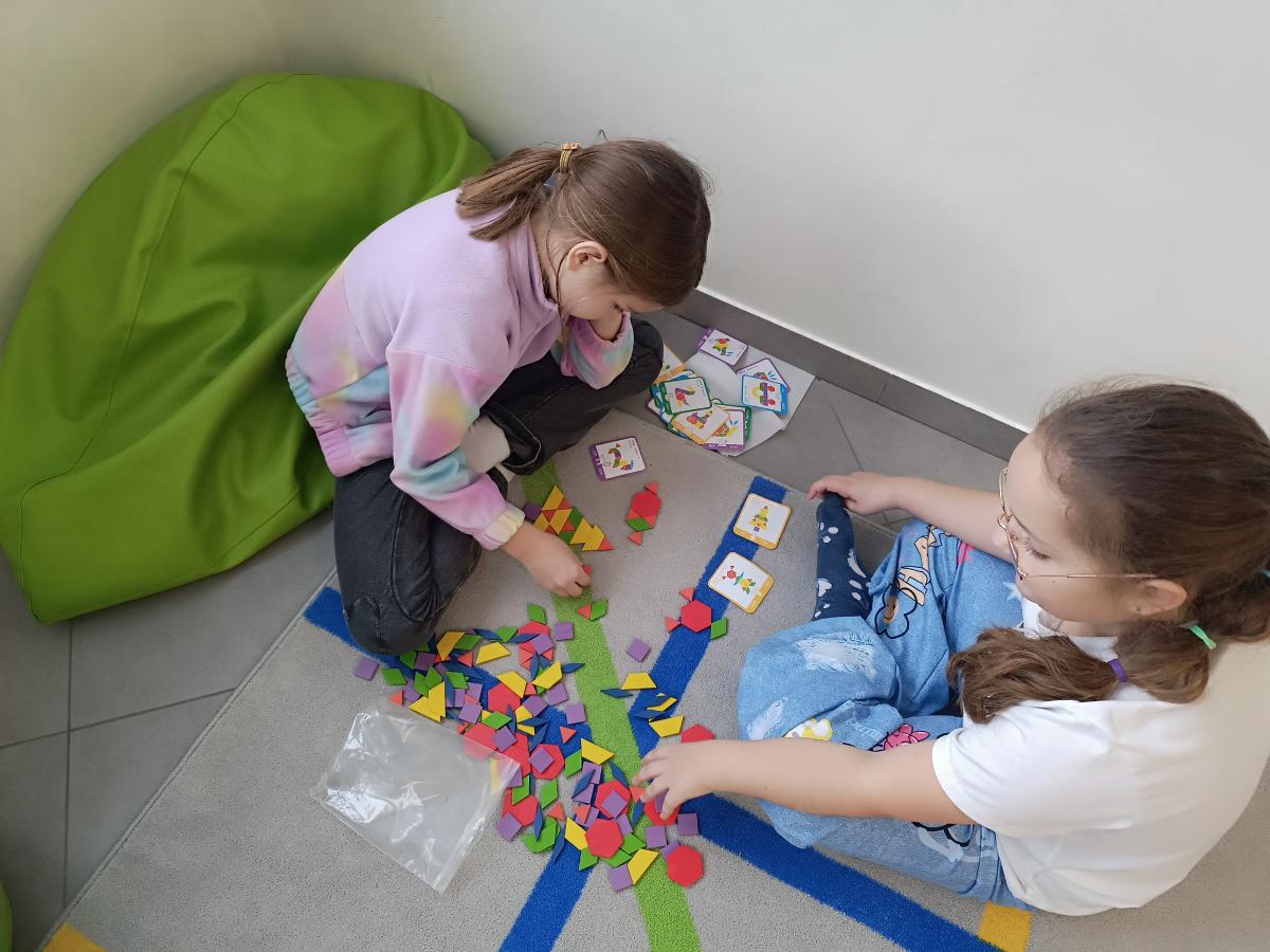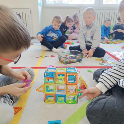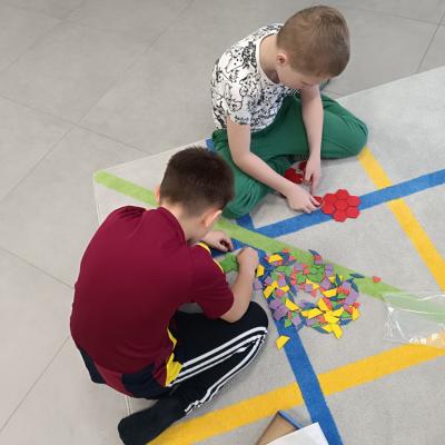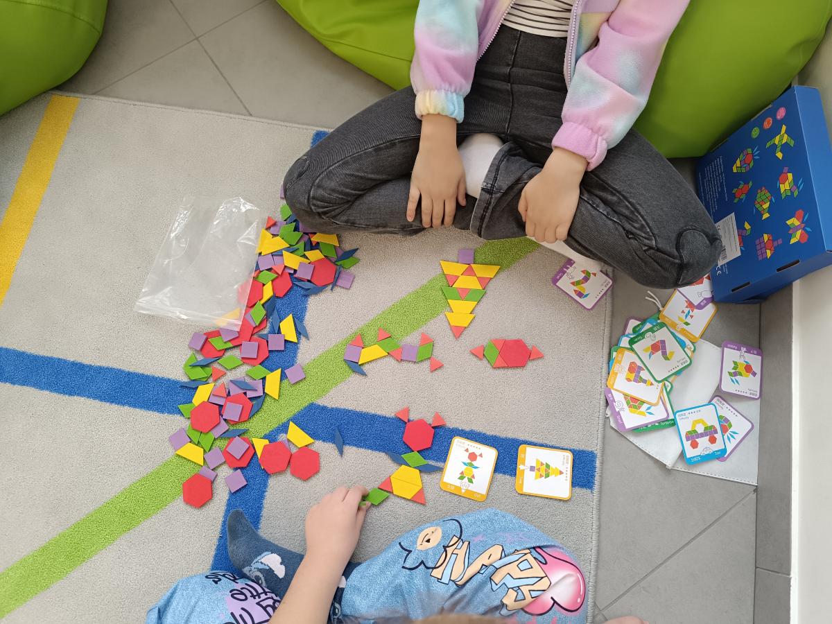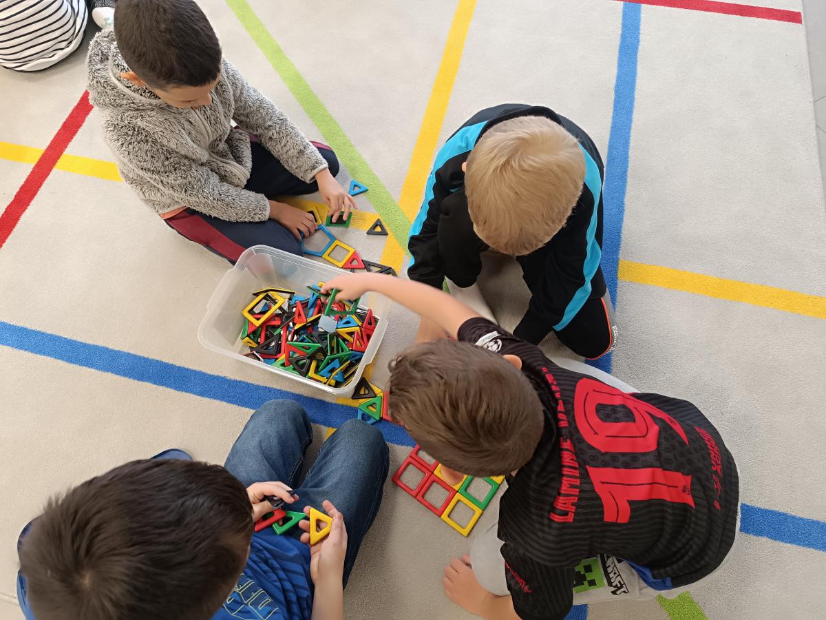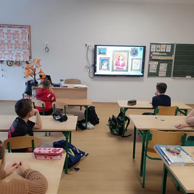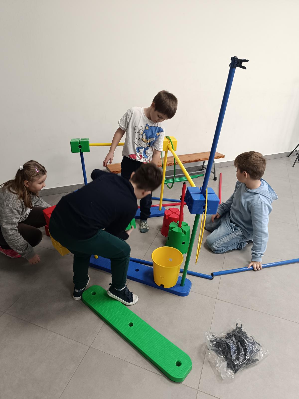 Na zajęciach projektu „Natalka i Antek w Świecie Wielkiej Matematyki” uczniowie poznawali temat „Matematyka w sztuce”. Na początku obejrzeli film ukazujący, że matematyka jest ściśle związana ze światem artystycznym – wpływa na kompozycję, proporcje i kształty. Następnie rozwiązywali zadania matematyczne związane z geometrią i symetrią. W części praktycznej dzieci tworzyły własne prace plastyczne, wykorzystując różnorodne kształty, a także budowały z klocków różne figury, rzeźby i bryły. Zajęcia pokazały, że matematyka może być twórcza, ciekawa i inspirująca.