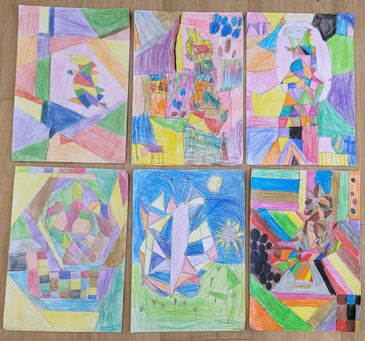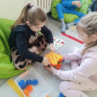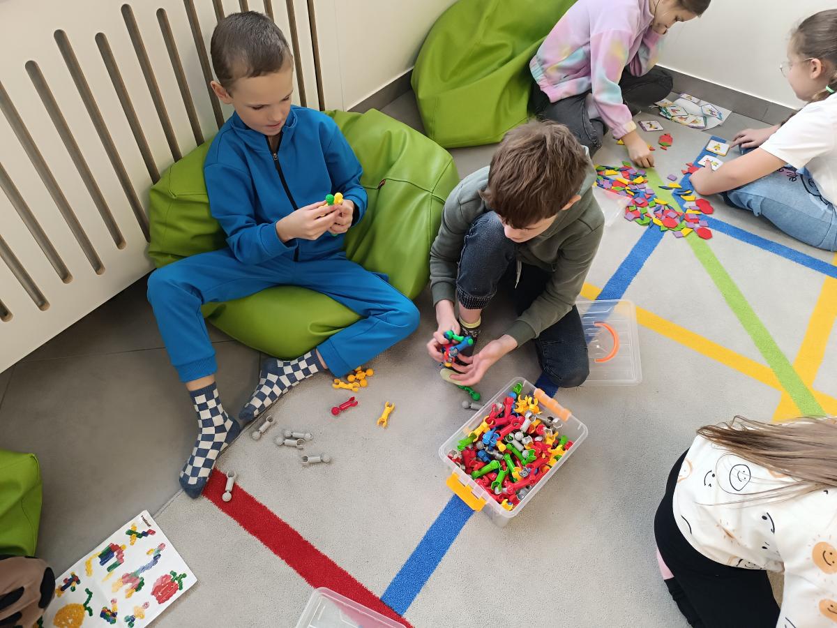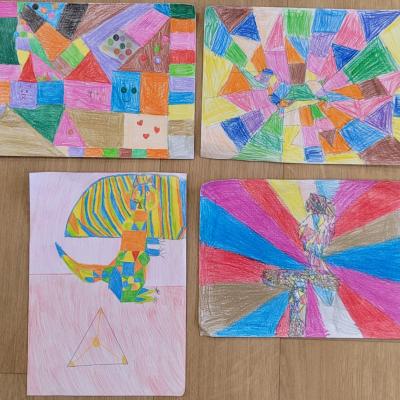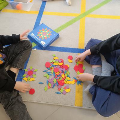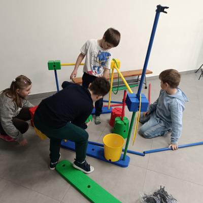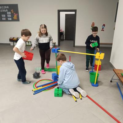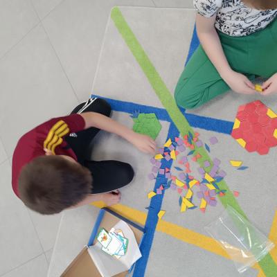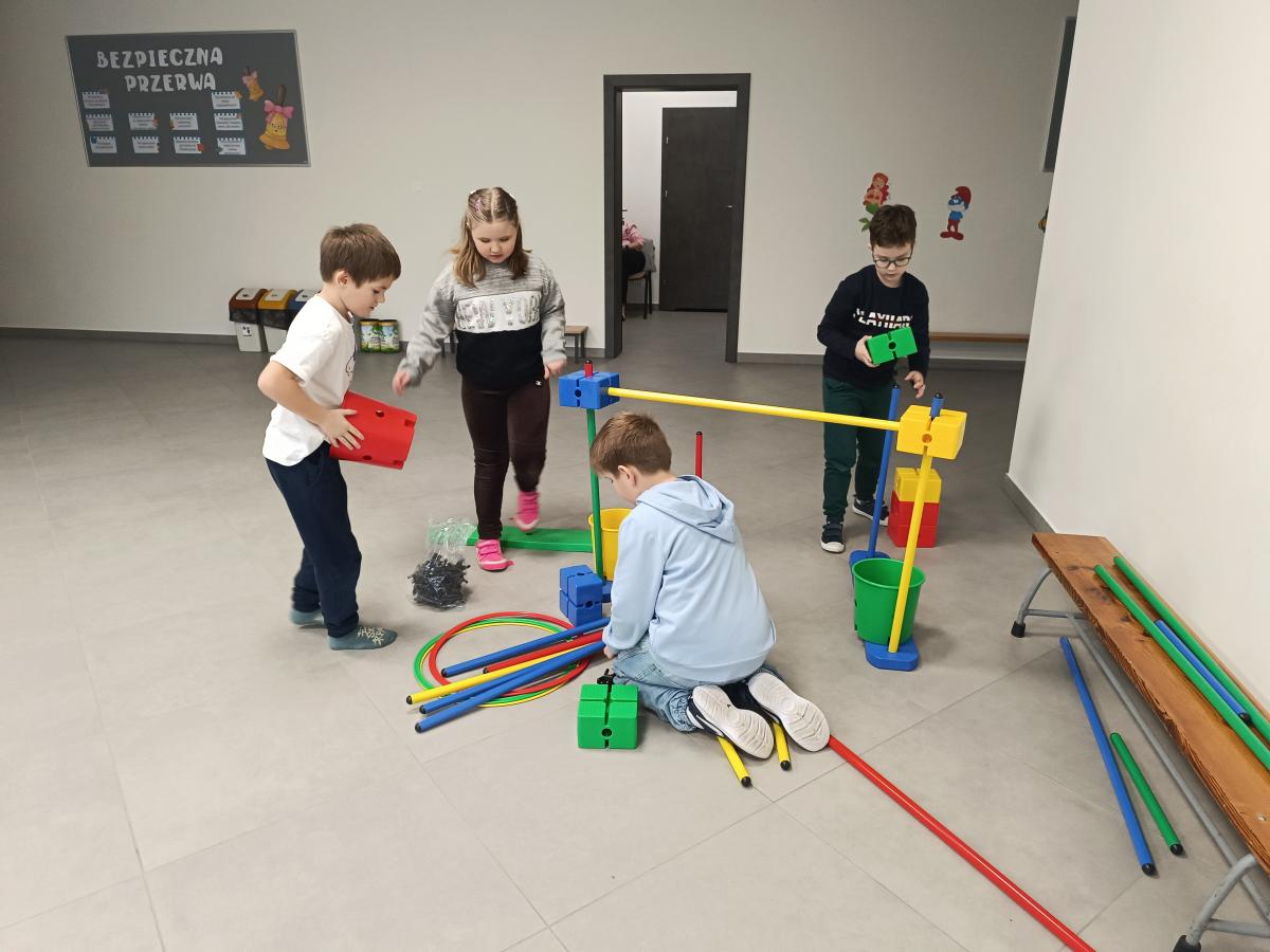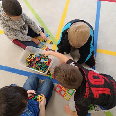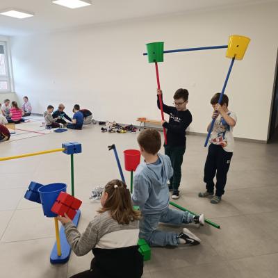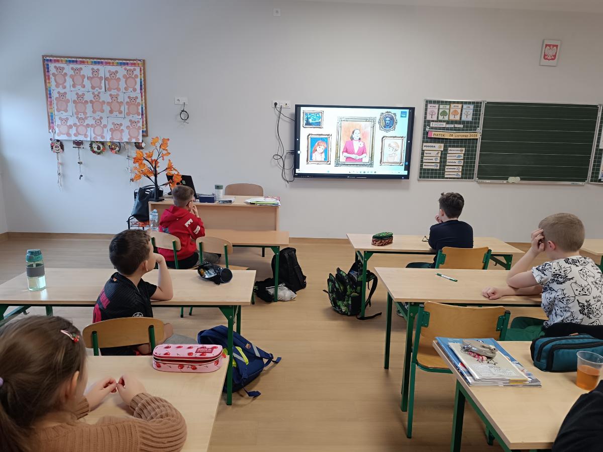 Na zajęciach projektu „Natalka i Antek w Świecie Wielkiej Matematyki” uczniowie poznawali temat „Matematyka w sztuce”. Na początku obejrzeli film ukazujący, że matematyka jest ściśle związana ze światem artystycznym – wpływa na kompozycję, proporcje i kształty. Następnie rozwiązywali zadania matematyczne związane z geometrią i symetrią. W części praktycznej dzieci tworzyły własne prace plastyczne, wykorzystując różnorodne kształty, a także budowały z klocków różne figury, rzeźby i bryły. Zajęcia pokazały, że matematyka może być twórcza, ciekawa i inspirująca.