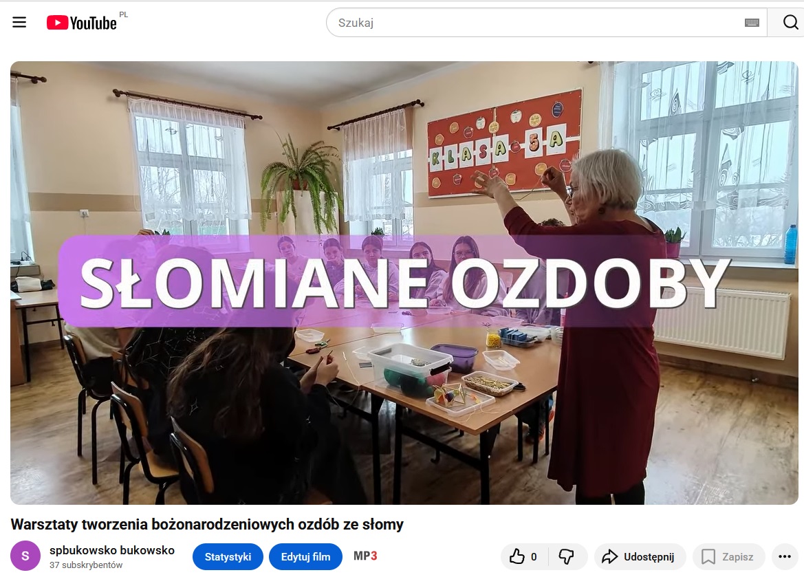 Uczniowie naszej szkoły wzięli udział w warsztatach tworzenia bożonarodzeniowych ozdób ze słomy. Warsztaty poprowadziła pani Marta Terier Myćka, która opowiedziała o znaczeniu dawnych słomianych ozdób oraz o ich roli w świątecznym wystroju wiejskich domów. Uczestnicy własnoręcznie wykonali dekoracje inspirowane tymi tradycjami, rozwijając jednocześnie zdolności manualne i artystyczne. Ekologiczne ozdoby zawisną na szkolnej choince.