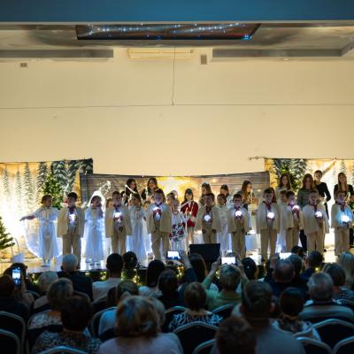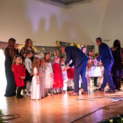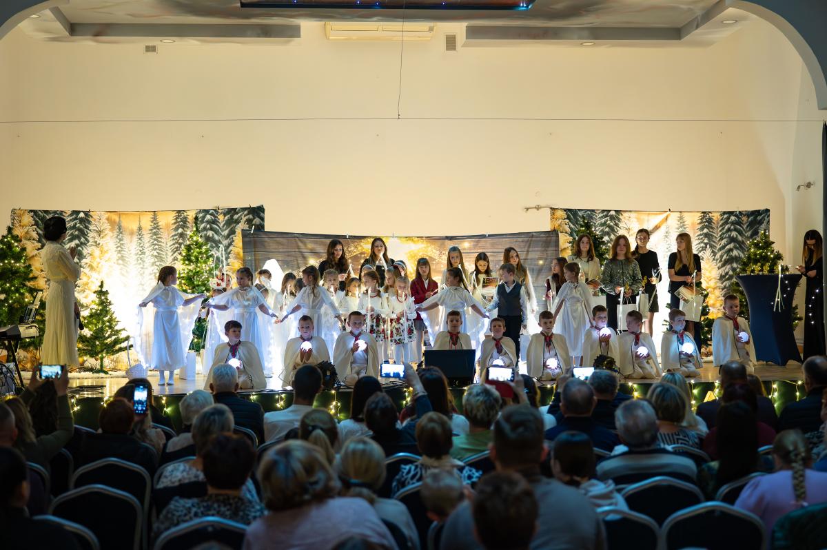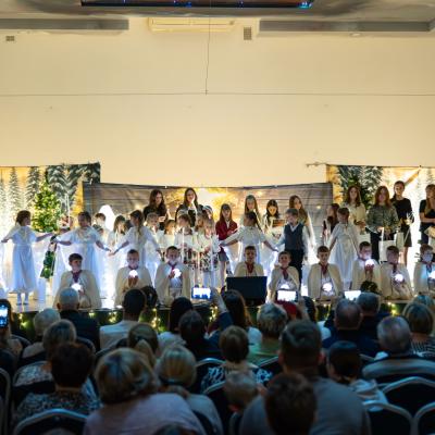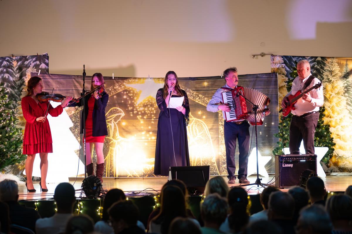 Nie zabrakło również najmłodszych – przedszkolaki z naszej placówki zachwyciły publiczność tańcem i śpiewem, a całość dopełniły występy zaproszonych artystów, wspólne kolędowanie i pokaz świetlny, który dopełnił wyjątkową atmosferę.