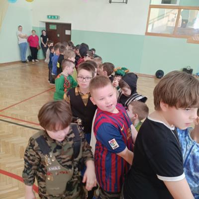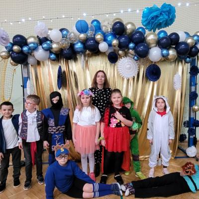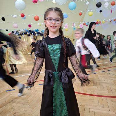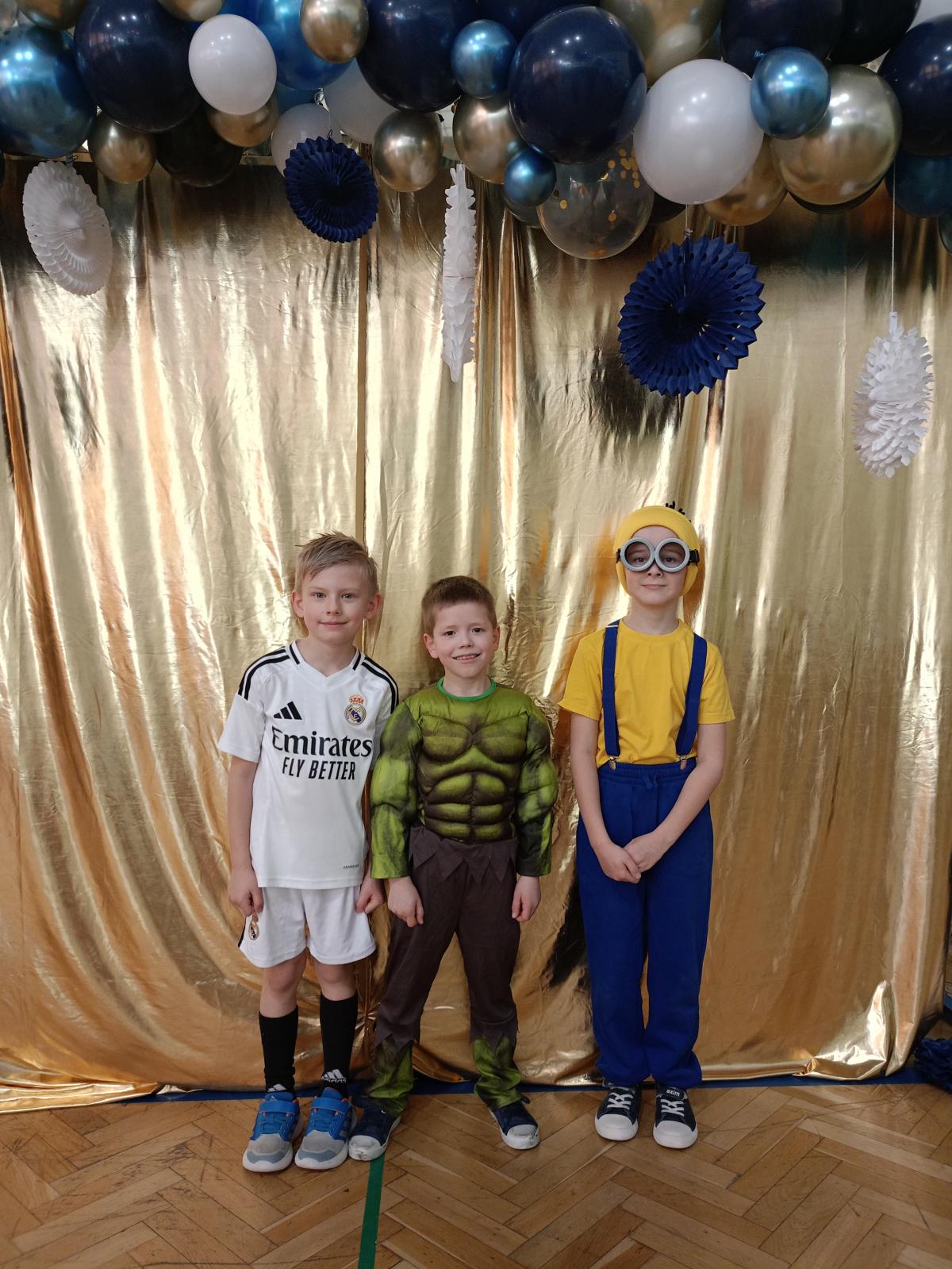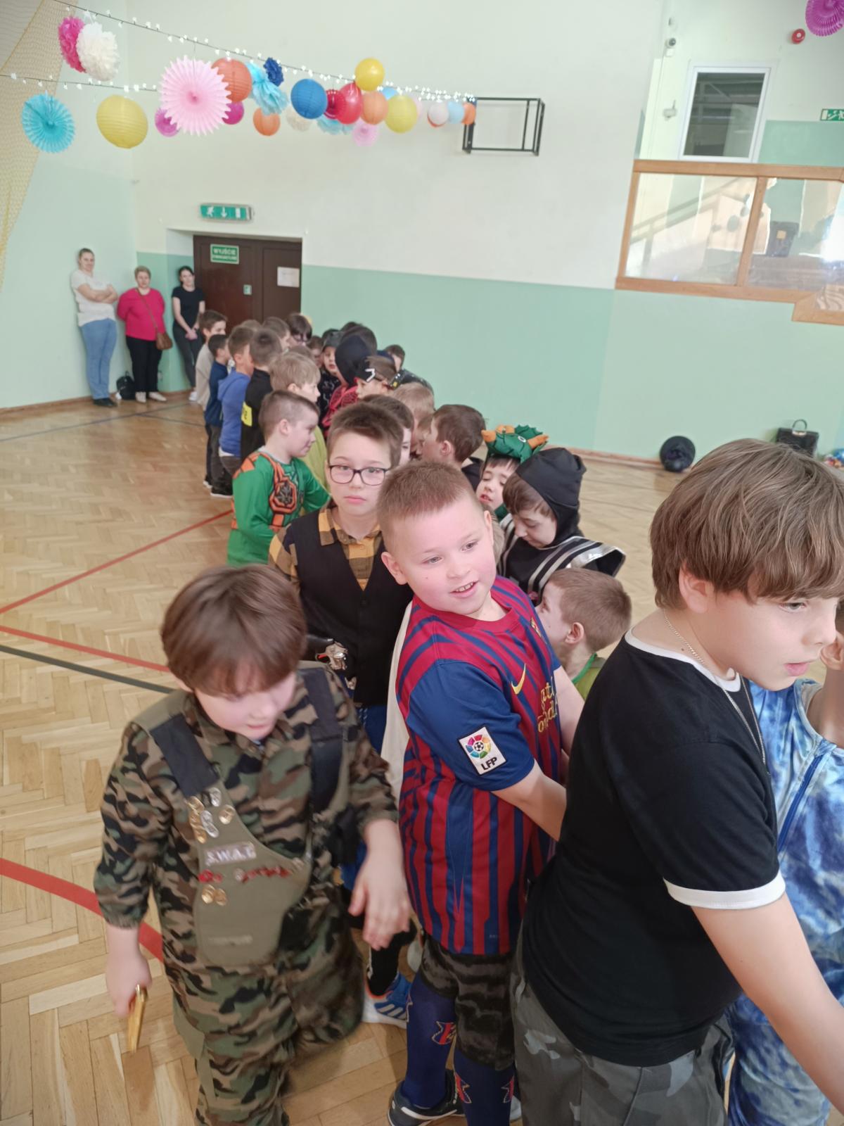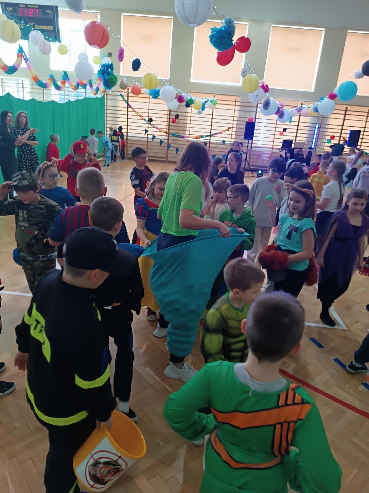 W naszej szkole odbył się bal karnawałowy dla uczniów klas I–III. Tego dnia sala wypełniła się muzyką, śmiechem i kolorami. O świetną oprawę muzyczną zadbał DJ, który puszczał ulubione hity dziecięce, zachęcając wszystkich do tańca.
