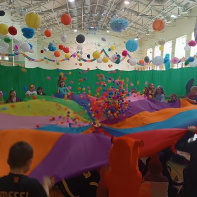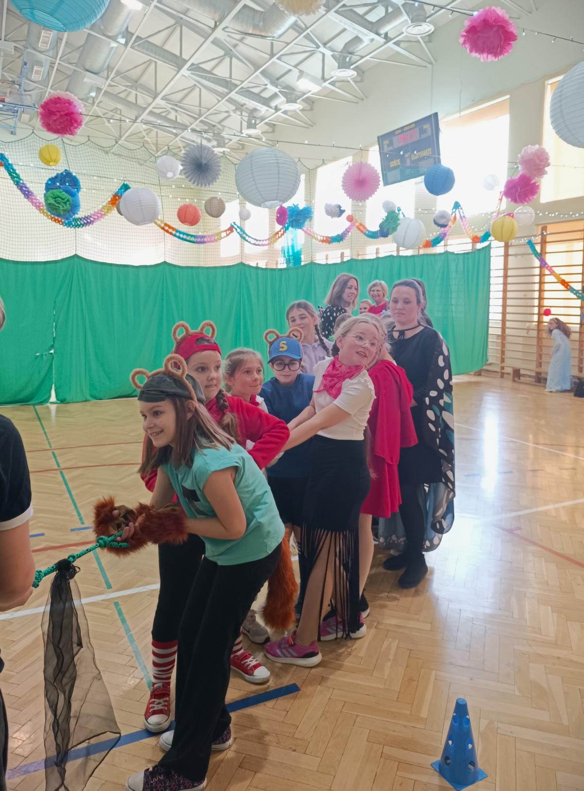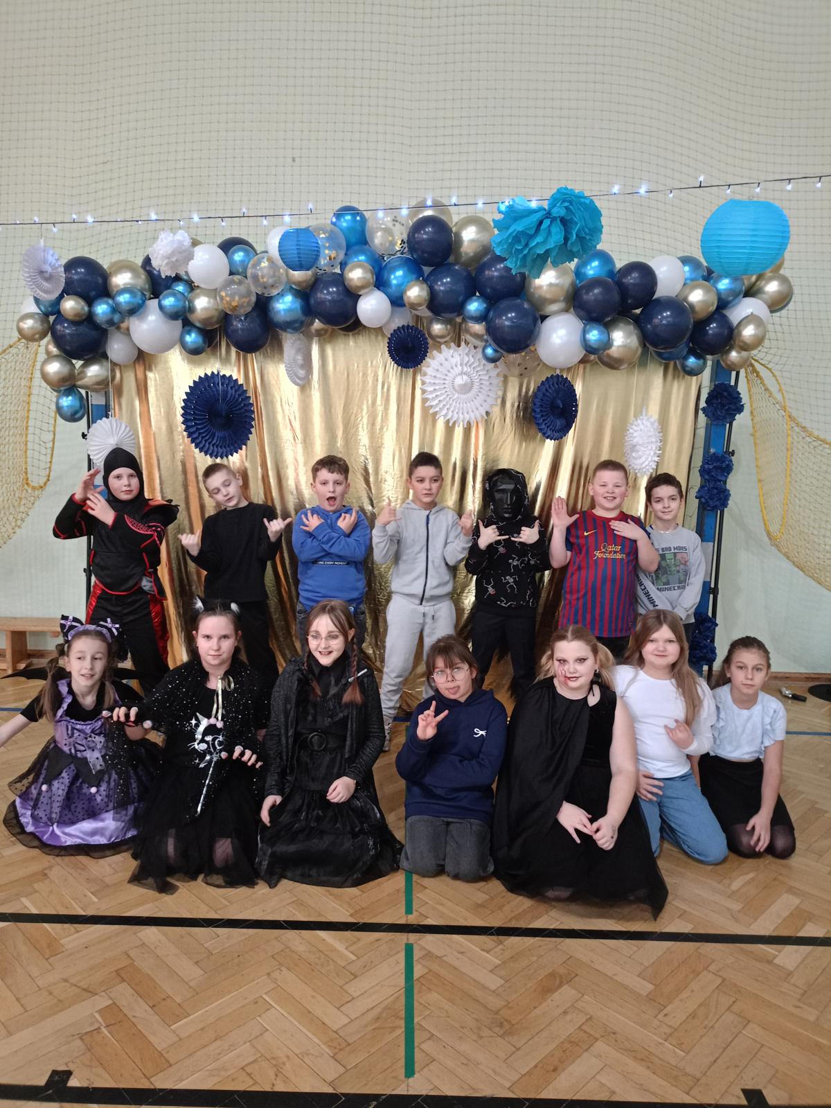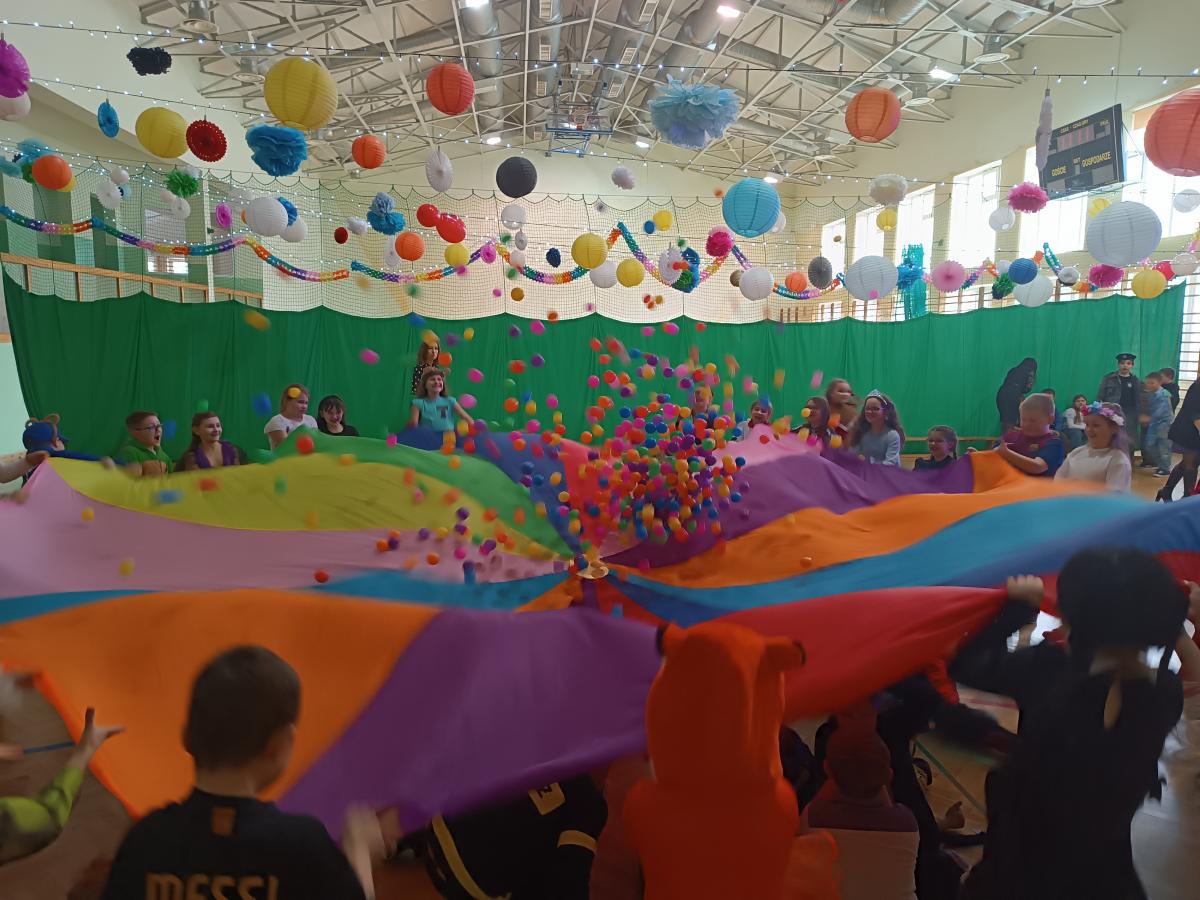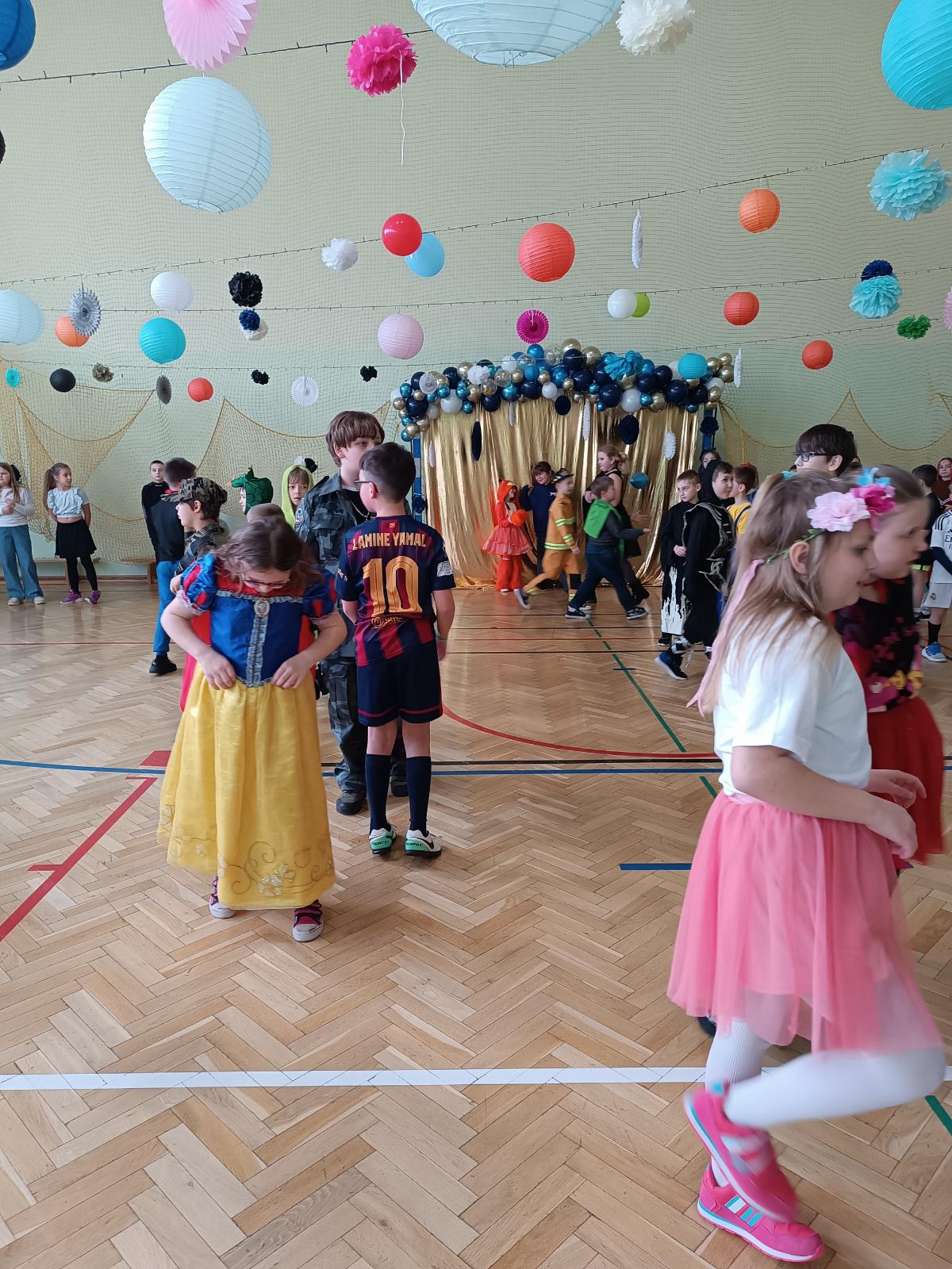 W naszej szkole odbył się bal karnawałowy dla uczniów klas I–III. Tego dnia sala wypełniła się muzyką, śmiechem i kolorami. O świetną oprawę muzyczną zadbał DJ, który puszczał ulubione hity dziecięce, zachęcając wszystkich do tańca.