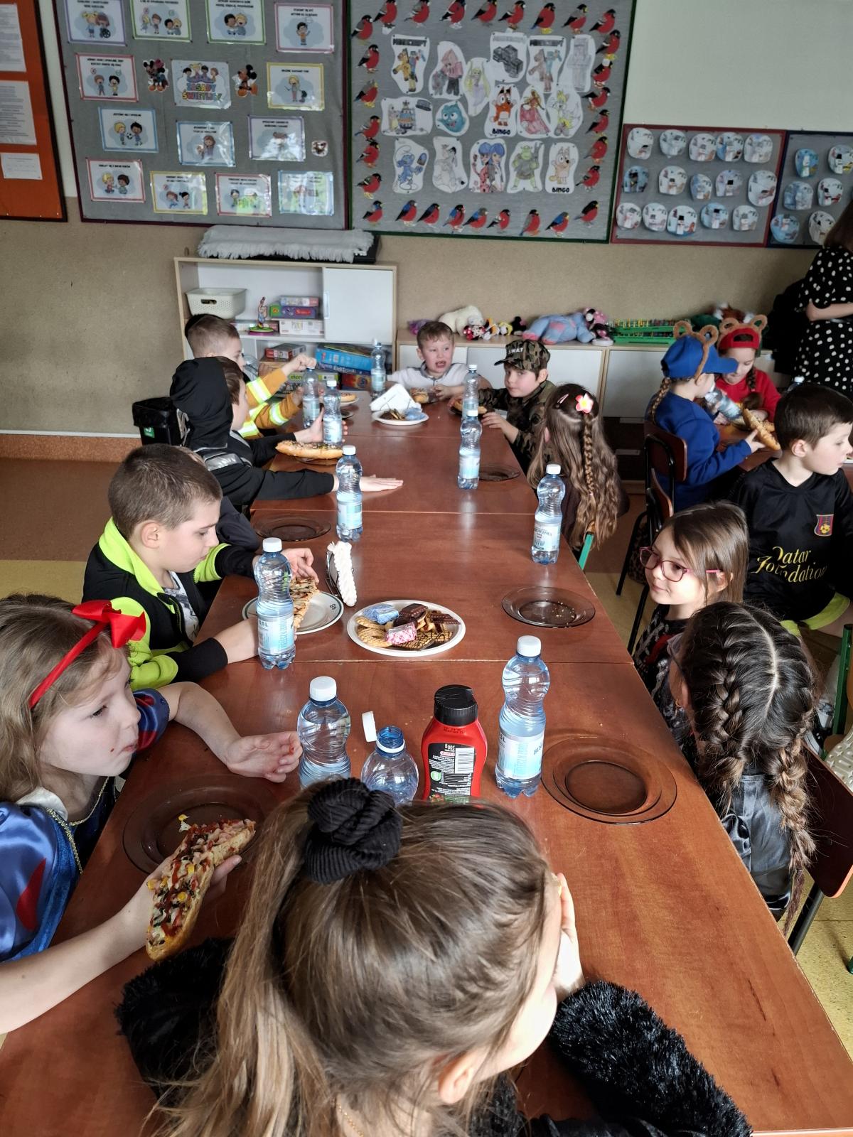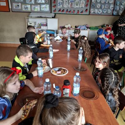 W trakcie zabawy na dzieci czekał również smaczny poczęstunek, który był miłą przerwą między tańcami. Zabawa choinkowa dostarczyła uczniom wielu radosnych chwil i na długo pozostanie w ich pamięci.