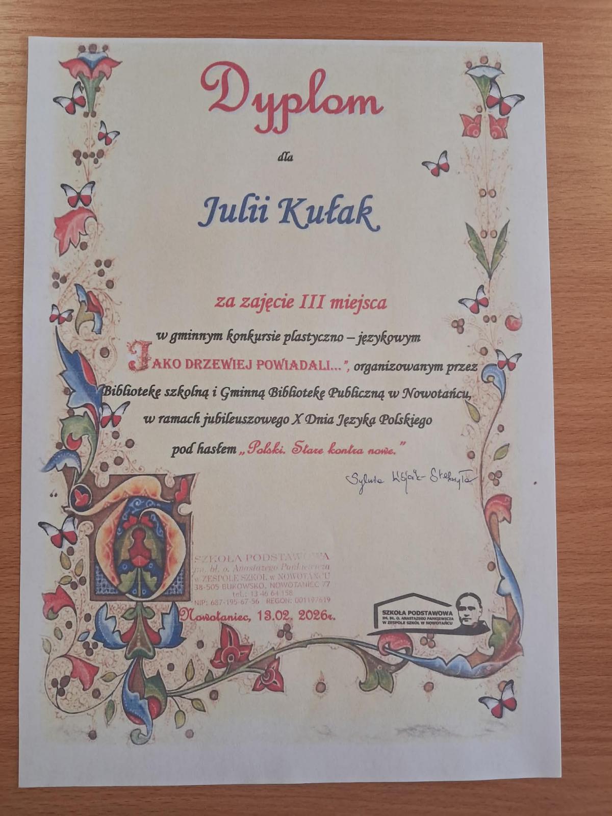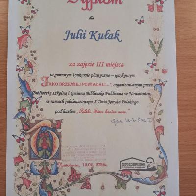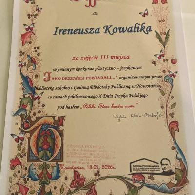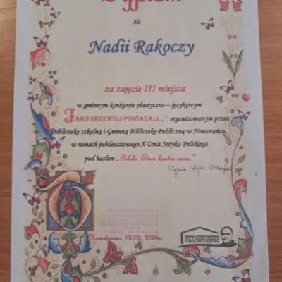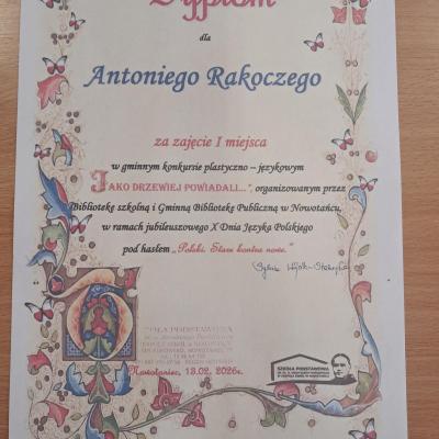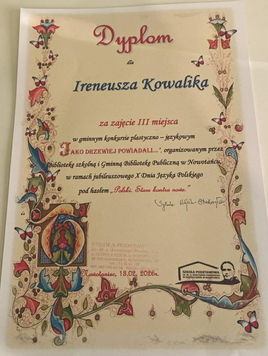 Dodatkowo wzięli udział w Międzyszkolnym Konkursie Polonistycznym o Nagrodę Wójta Gminy Bukowsko w ZS Nowotaniec, konkursie literacko –plastycznym: „Jako drzewiej powiadali”, gdzie osiągnęli wysokie wyniki i znaleźli się w gronie laureatów. Ogromne gratulacje dla wszystkich uczestników! Jesteśmy z Was bardzo dumni!