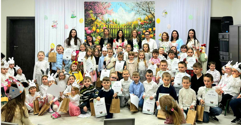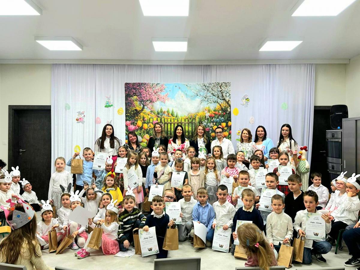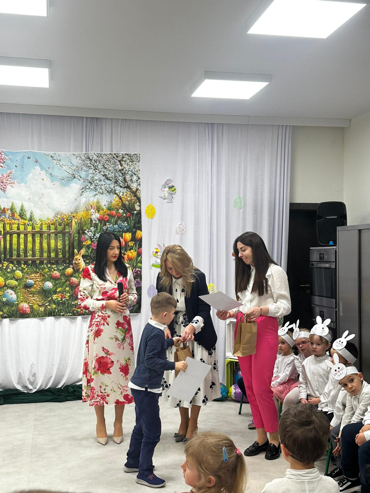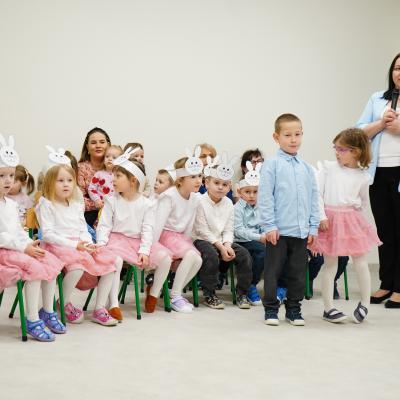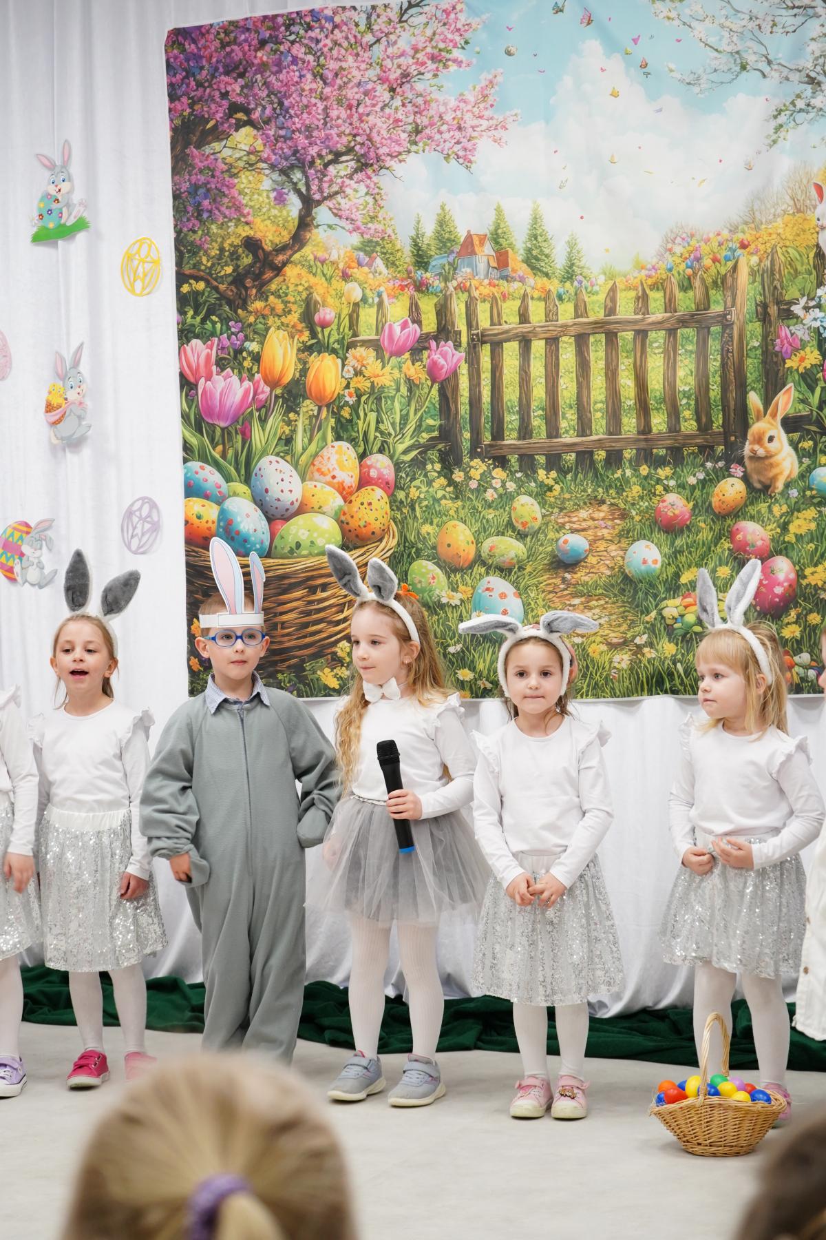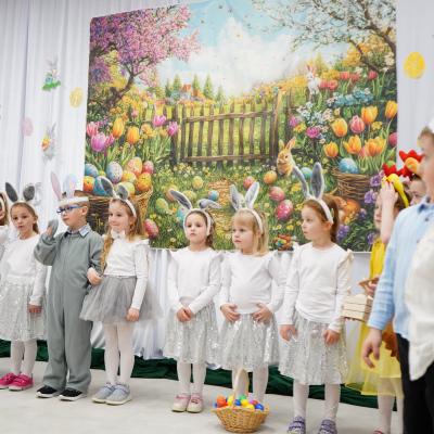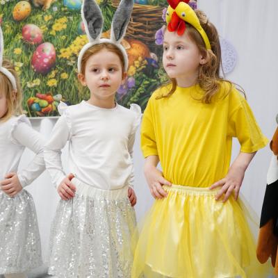 Dzieci zaprezentowały piękny program artystyczny – nie zabrakło życzeń wielkanocnych, radosnych tańców oraz świątecznych piosenek. Mali artyści zachwycili wszystkich nie tylko swoimi występami, ale również odświętnymi, kolorowymi strojami.