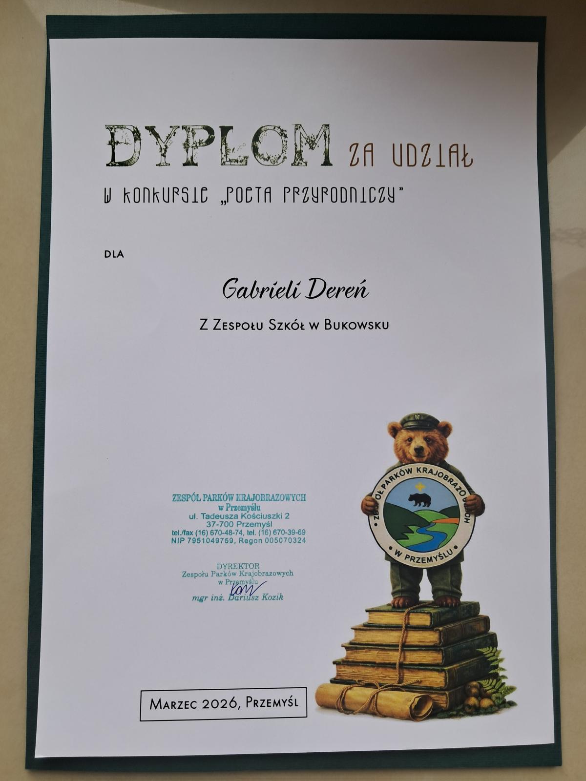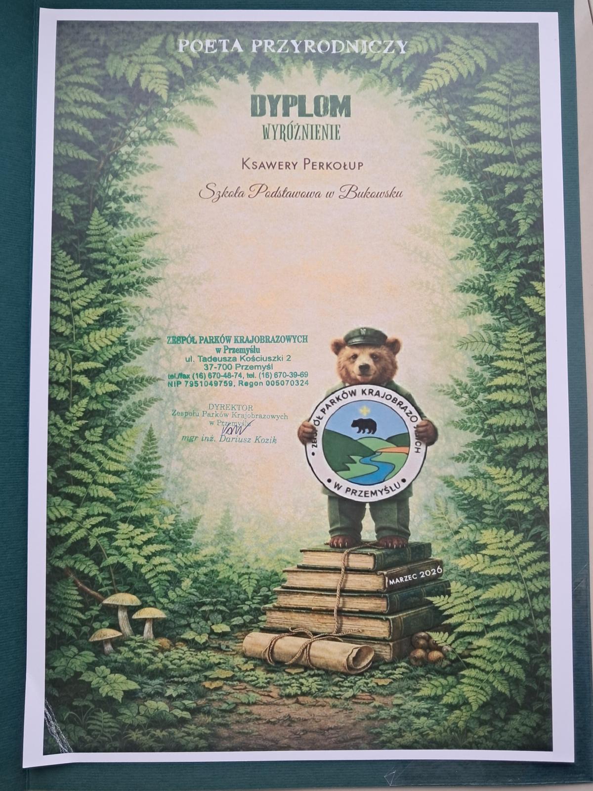 Kolejna edycja konkursu „Poeta Przyrodniczy”, organizowanego przez Zespół Parków Krajobrazowych w Przemyślu, już za nami. Wydarzenie to co roku przyciąga młodych miłośników przyrody i poezji, dając im możliwość wyrażenia swoich emocji oraz wrażliwości na piękno otaczającego nas świata poprzez słowo pisane.