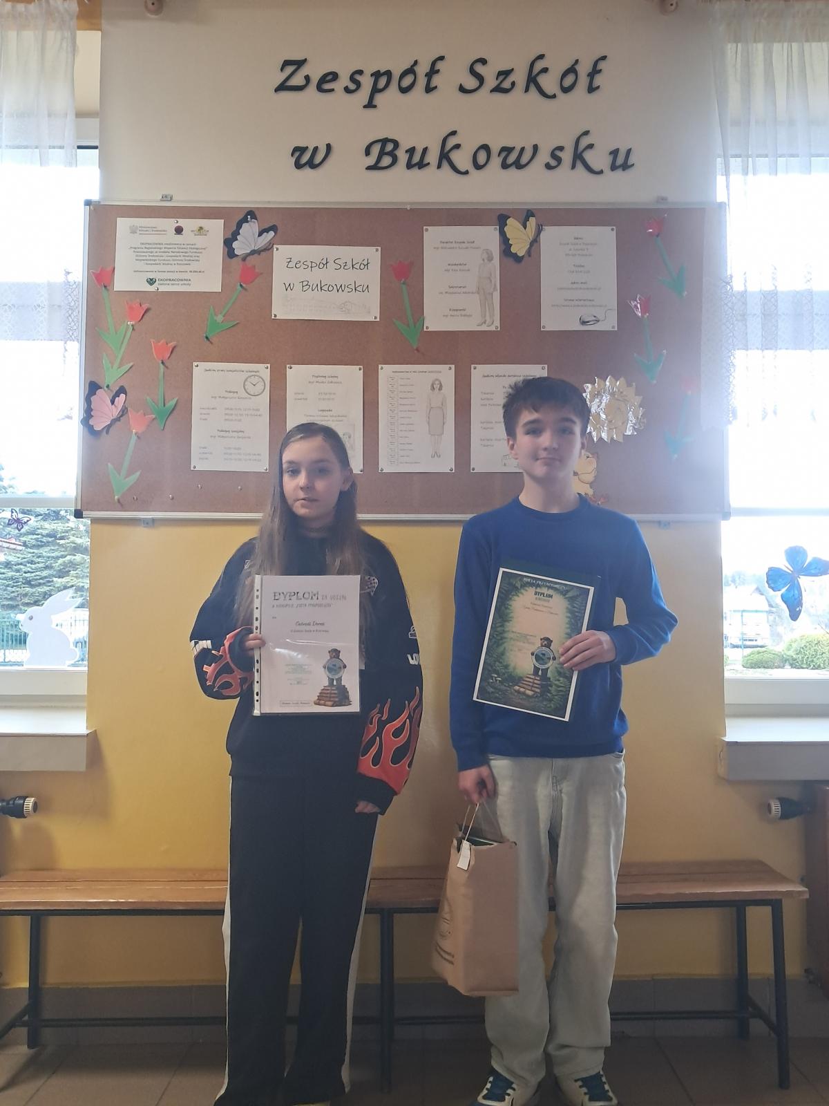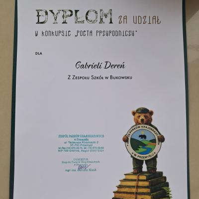 Z radością informujemy, że w tegorocznej edycji udział wzięło dwoje uczniów z naszej szkoły. Ksawery Perkoup z klasy 7b zdobył wyróżnienie za swoją twórczość, natomiast Gabriela Dereń z klasy 6a otrzymała dyplom za udział w konkursie. Ich zaangażowanie i twórcza pasja są powodem do dumy dla całej społeczności szkolnej.