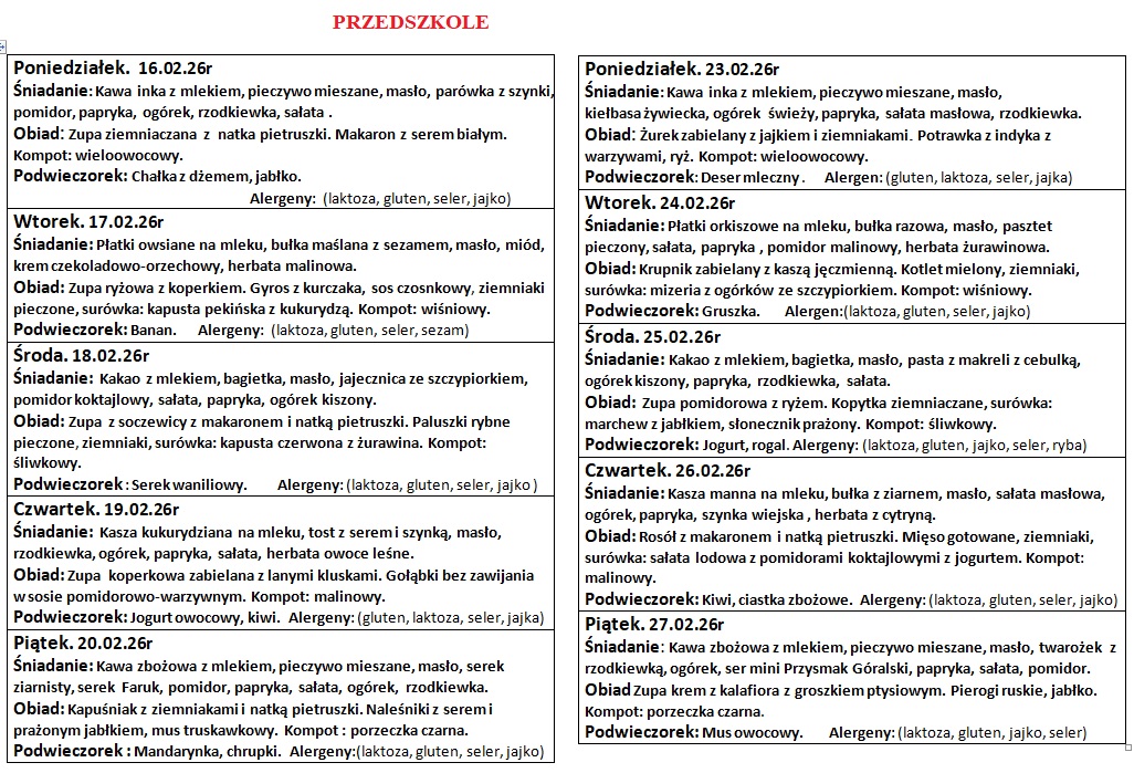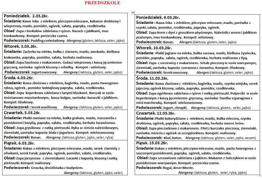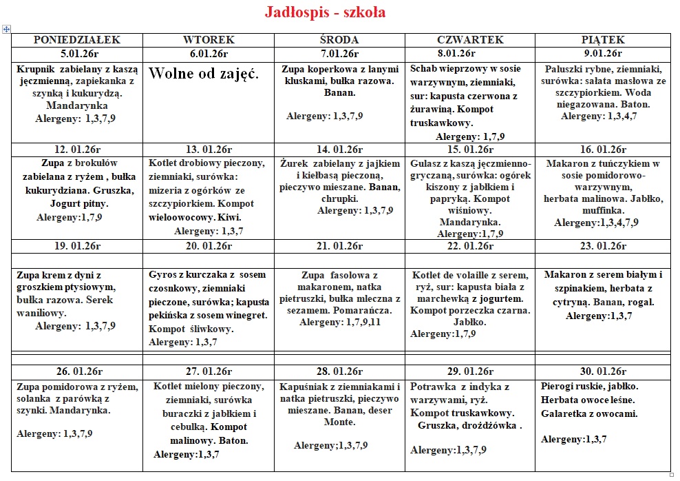 Zespół Szkół w Bukowsku | Jadłospis